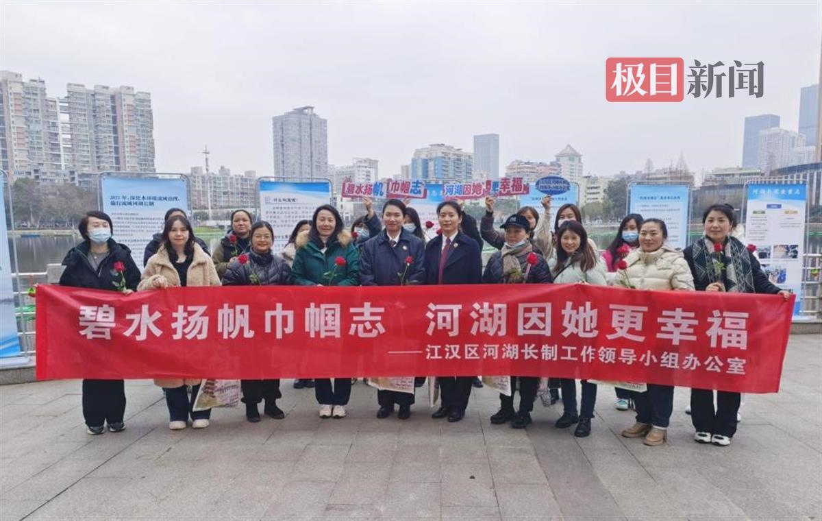 初春三月,万物复苏。“三八”妇女节到来,来自武汉市江汉区河湖长办、区检察院、街道社区河湖长办、民间河湖长志愿者以及湖泊养护、排水疏捞、园林绿化等各个群体的女性代表来到菱角湖公园,共同参与由区河湖长制办公室携手武汉爱我百湖志愿者协会联合举办的“碧水扬帆巾帼志 河湖因她更幸福”河湖长制主题宣传活动。