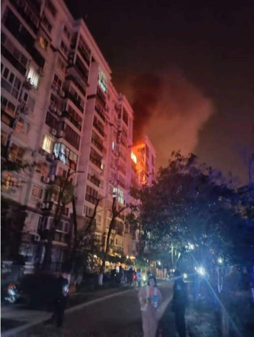 当天,武汉市消防救援指挥中心接到报警后,迅速调集二七路、百步亭消防救援站出动9辆消防车、50名消防员赶赴现场救援。消防员到场后,只见起火楼层为一栋11层框架结构居民楼的第9楼,火势正处于猛烈燃烧阶段,现场浓烟滚滚、火光冲天。