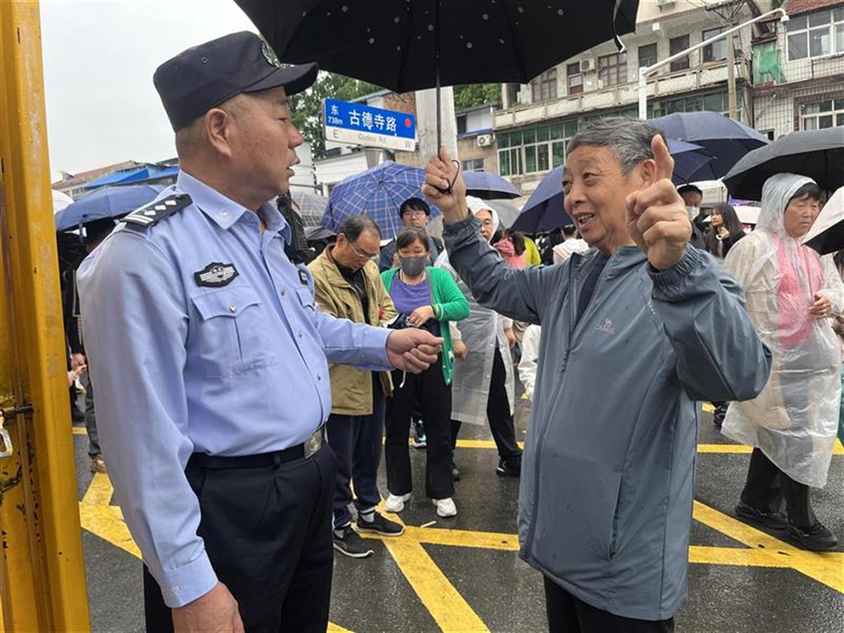 “小朋友,从哪里来?去了黄鹤楼没有?”5月3日,武汉下起了小雨,江岸区古德寺门前仍然人头攒动,来自全国各地的游客涌向这个网红打卡地。“网红”民警沈胜文来到这里,热情地与游客们打招呼。