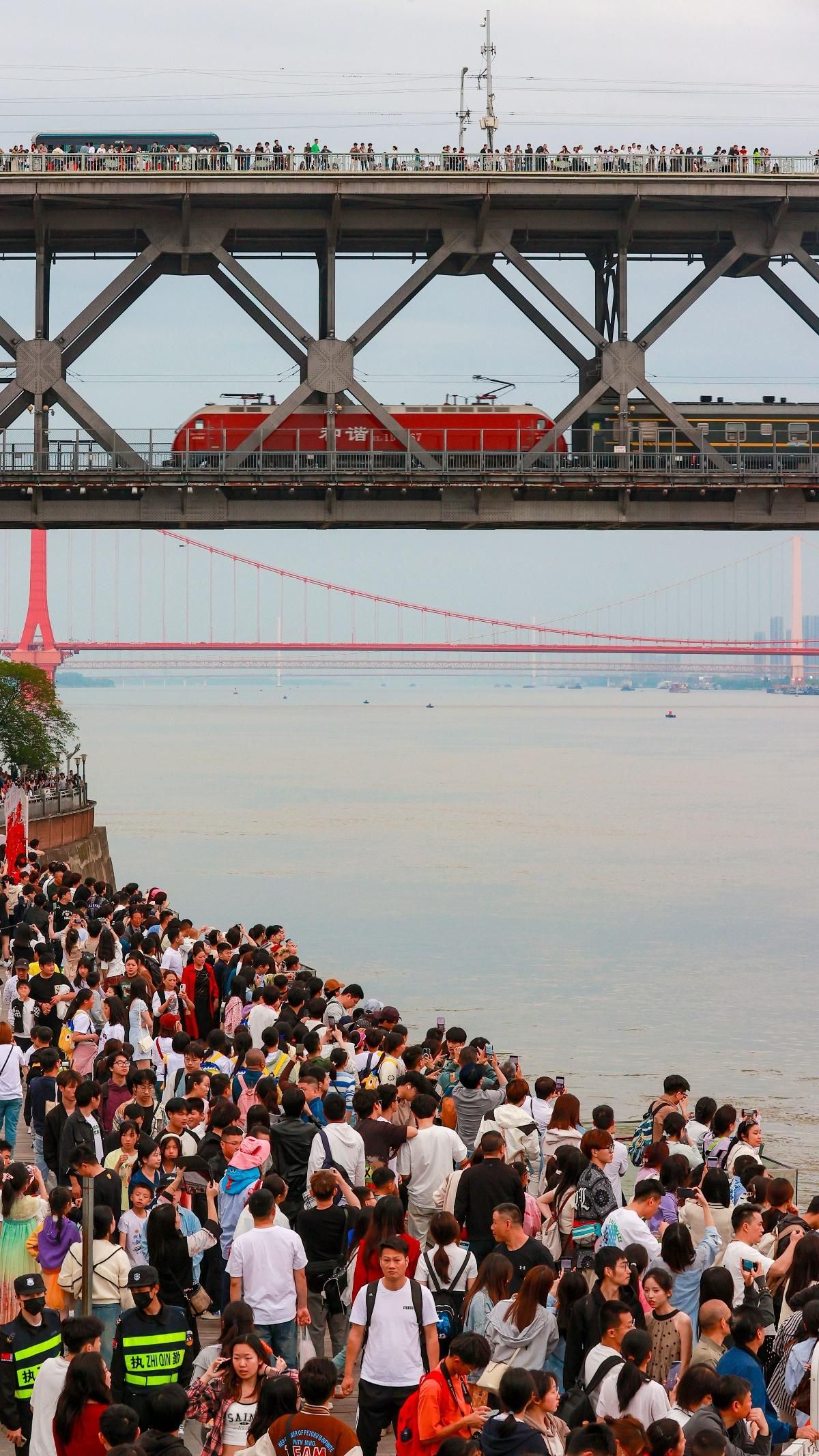 长江大桥脚下的武昌江滩游人如织。长江日报记者陈亮 摄