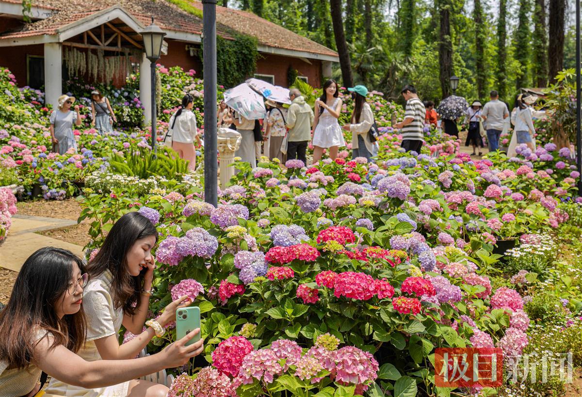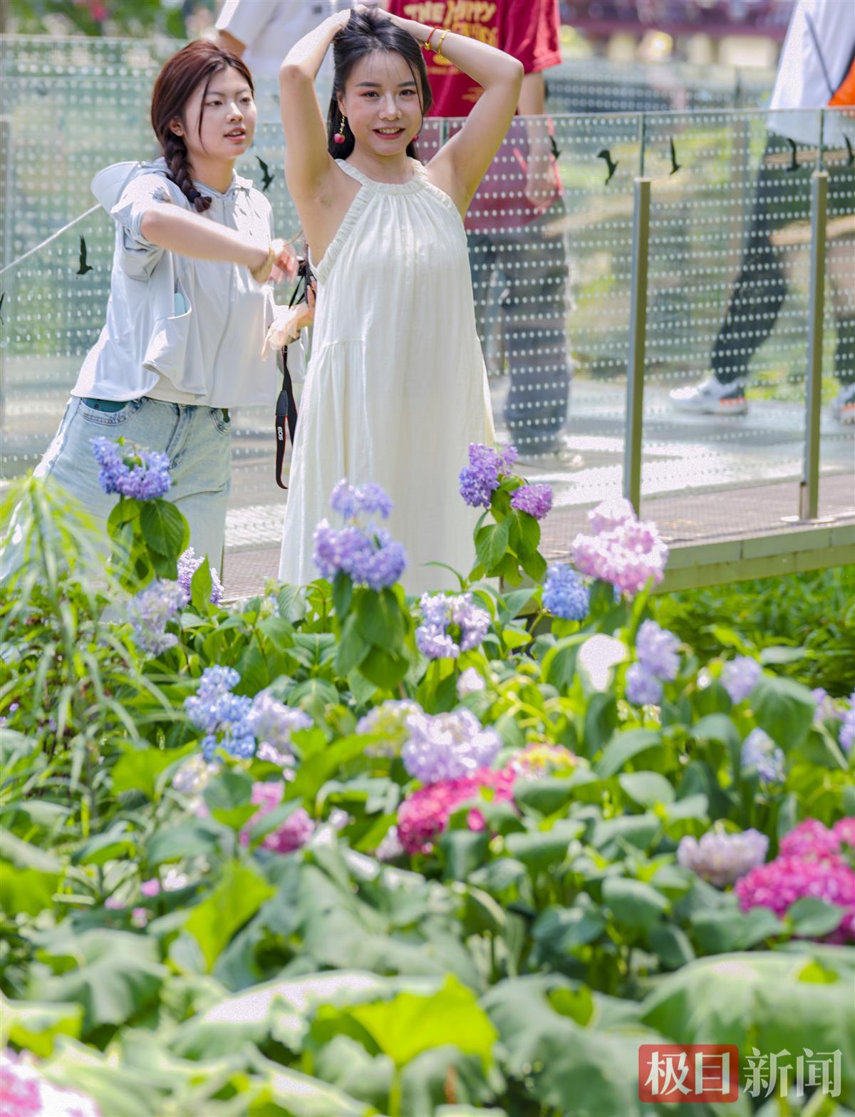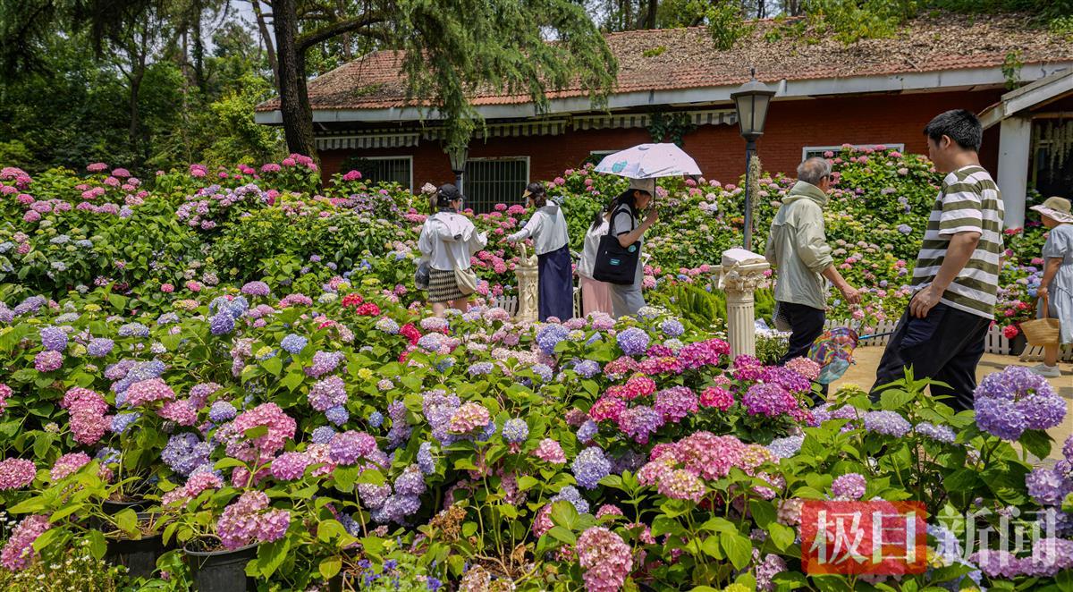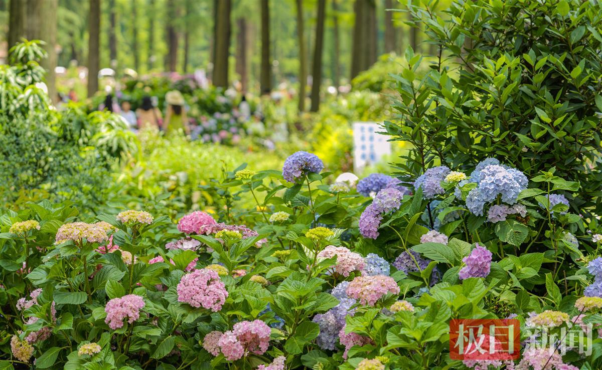 玫红、粉红、深蓝、淡紫、浅绿……走进武汉植物园中央花境大道,你就会坠入绚烂的绣球花海中,幸福又甜蜜!