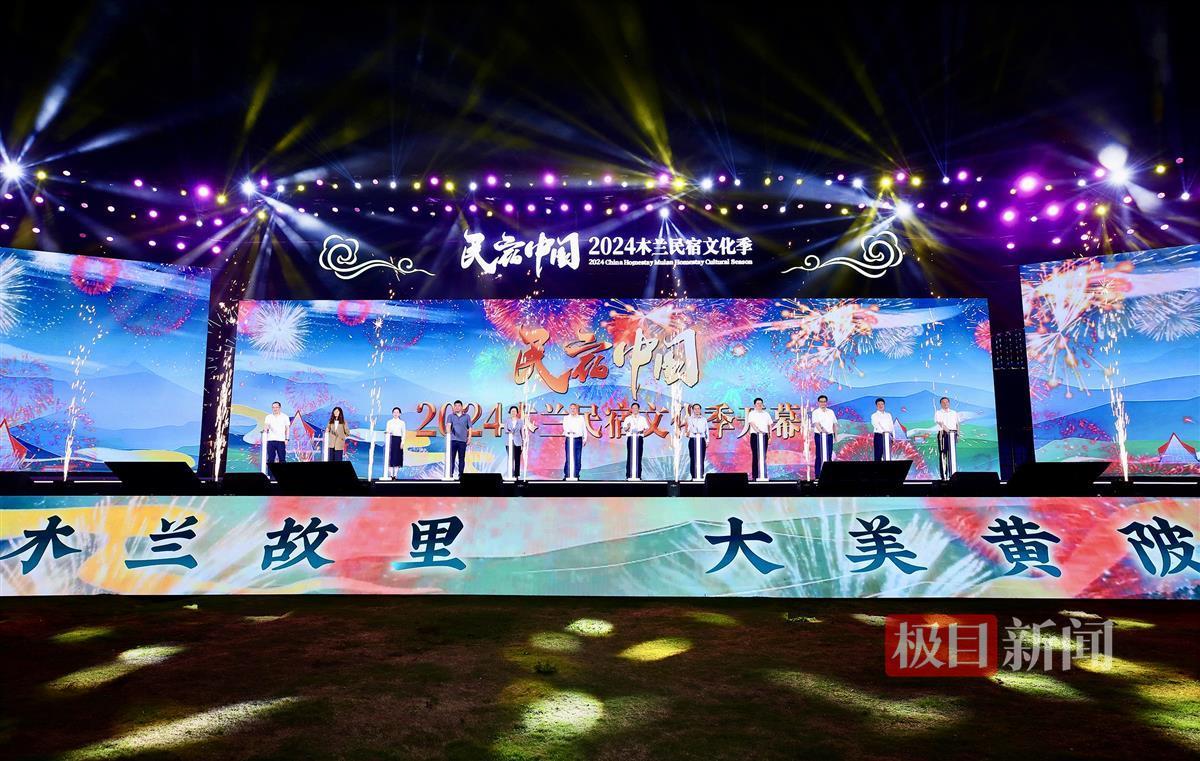 5月25日晚上7时30分许,在由武汉歌舞剧院歌舞表演的节目《盛世欢歌》中,“民宿中国·2024木兰民宿文化季”在武汉市黄陂区木兰花乡景区拉开帷幕。
