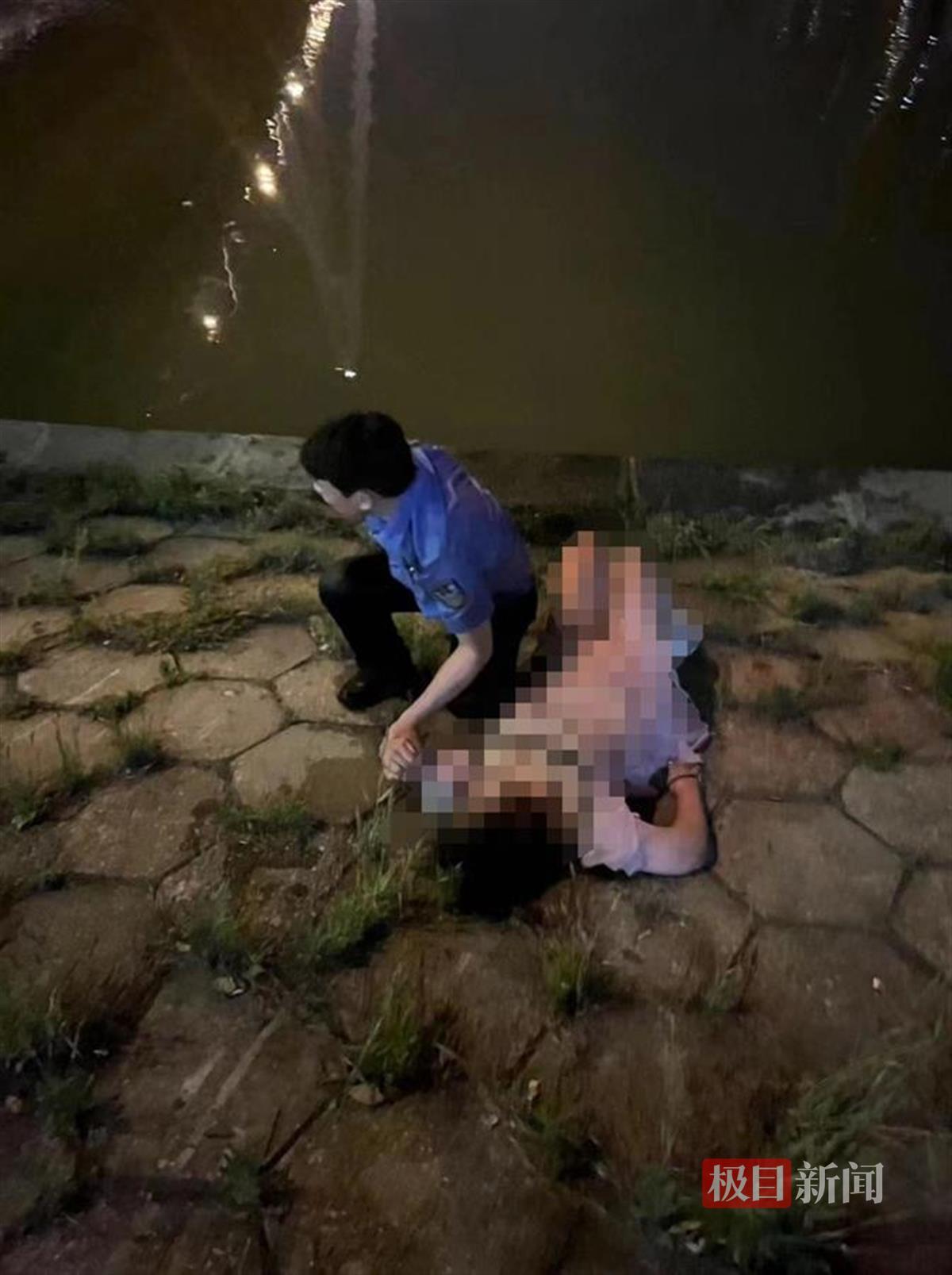 5月9日晚10时许,硚口区公安分局汉中派出所青年民警陈炉楠、辅警陈成巡逻经过沿河大道月湖桥下,一名热心群众上前报警求助,顺着他手指的方向,陈炉楠看到,远处江滩上,一名白衣女子翻过护栏,突然跳入江中。
