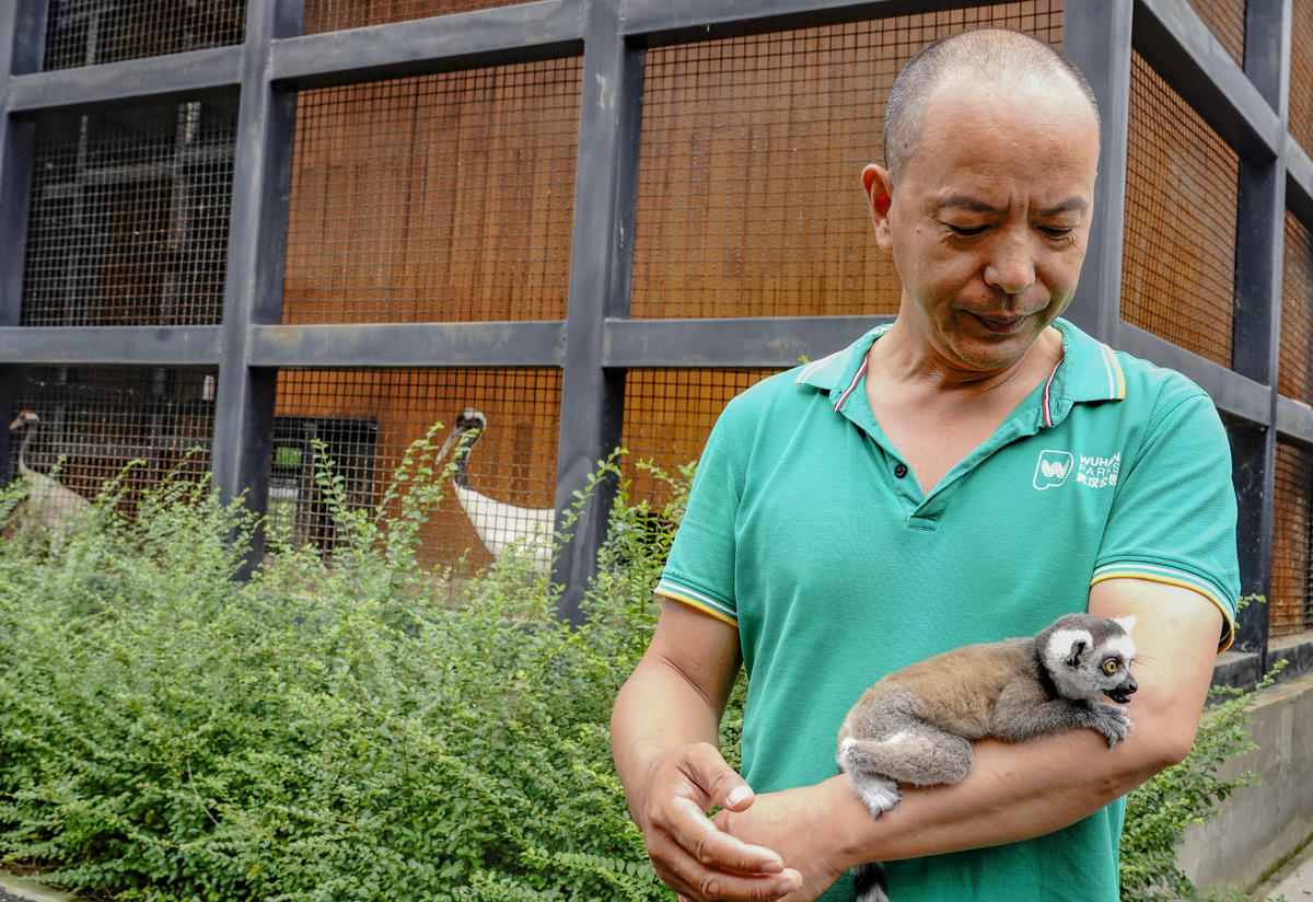 一点一滴,细致喂养,现在环尾狐猴身长有30多厘米了,活泼可爱,涂炭每天抱着它在园内遛弯好几次,“让它保持好心情。”“满3个月以后,它若能吃水果辅食,我就可以下班回家睡觉了。”涂炭期待着它健康快乐成长。涂炭1989年来武汉动物园工作,几乎照顾过所有种类的动物,经验丰富,“等它半岁以后,先将它和新生的环尾狐猴小宝一起生活,再慢慢融入大家庭。”