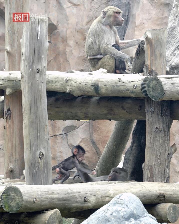 眼前的这3只新生小狒狒,正是饲养团队用心良苦陪伴阿拉伯狒狒家族一年的成果。