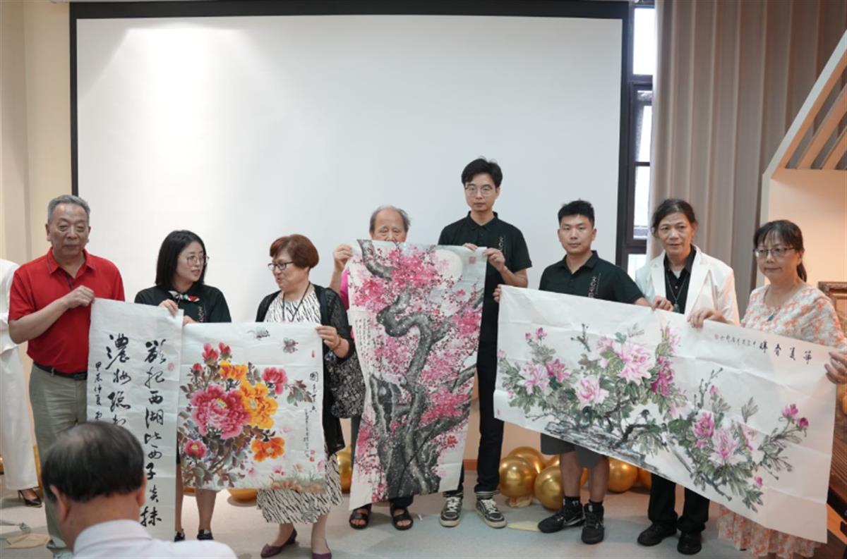 湖北省毛泽东书法研究会党委书记方平安还为文心字院现场授牌:湖北省红色文化书画培训基地。授牌仪式上,方平安对文心书院表示祝福,并期待文心字院能继续将中国红色文化、传统文化和非遗文化继续传承和发扬。随后,多位艺术家为文心字院进行了名家字画赠予仪式。