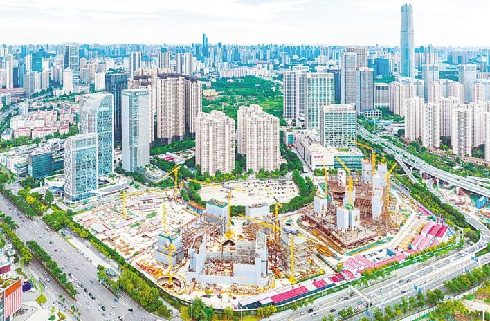7月4日,武汉图书馆新馆建设现场,工人们加紧施工,冲刺主体结构封顶。武汉图书馆新馆项目位于武汉王家墩中央商务区核心地段,总建筑面积14.23万平方米,是目前全国乃至亚洲最大的单体图书馆,建成后将成为武汉新的城市文化地标。