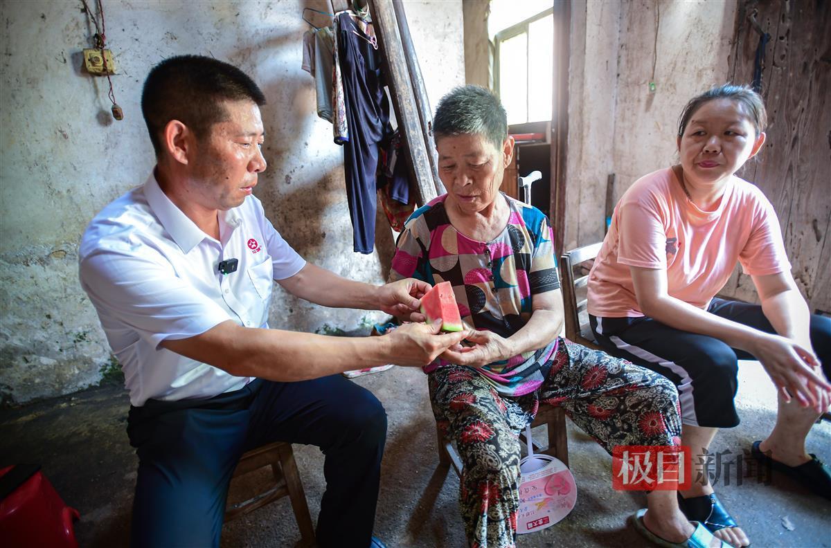 他习惯性地从母亲手中“抢”过扇子,慢慢地摇了起来,为母亲扇风降温。妻子许仙则麻利地将买的西瓜切开,挑出瓜心较甜的那块,送到母亲手上。看到儿子和儿媳妇平安回到家中,老人脸上挂满笑容,大口吃了起来。