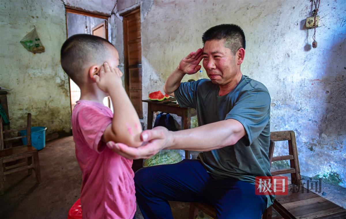 见到伯伯回来,6岁的夏雨豪很快凑到了跟前,他非常崇拜军人,从妈妈手机上看到伯伯夏辉拦车救人的视频,他特意向伯伯敬了个军礼,嘴里说道:“长大了,我也想像伯伯一样当解放军。”