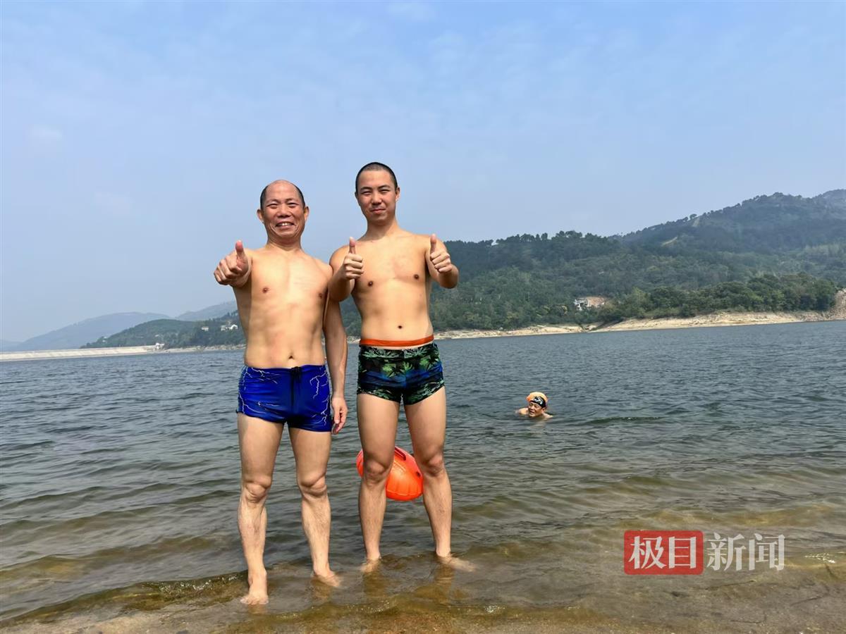 在新区方队里,还有一对父子队员——54岁的施建军和29岁的施钻。施建军是2018年开始参加7·16渡江节活动,已参加了3次,而其子施钻虽然多次参与民间的渡江活动,可是正式参加渡江节这样的大型活动还是第一次。尽管对横渡长江已不陌生,但第一次参赛的施钻还是难掩激动:“平时就喜欢玩水,跟着父亲和其他朋友没少往长江里钻,横渡也不是一两次了。可是没参加过7·16渡江节,我感觉我的横渡生涯还是缺了一块,如今终于圆满了。”