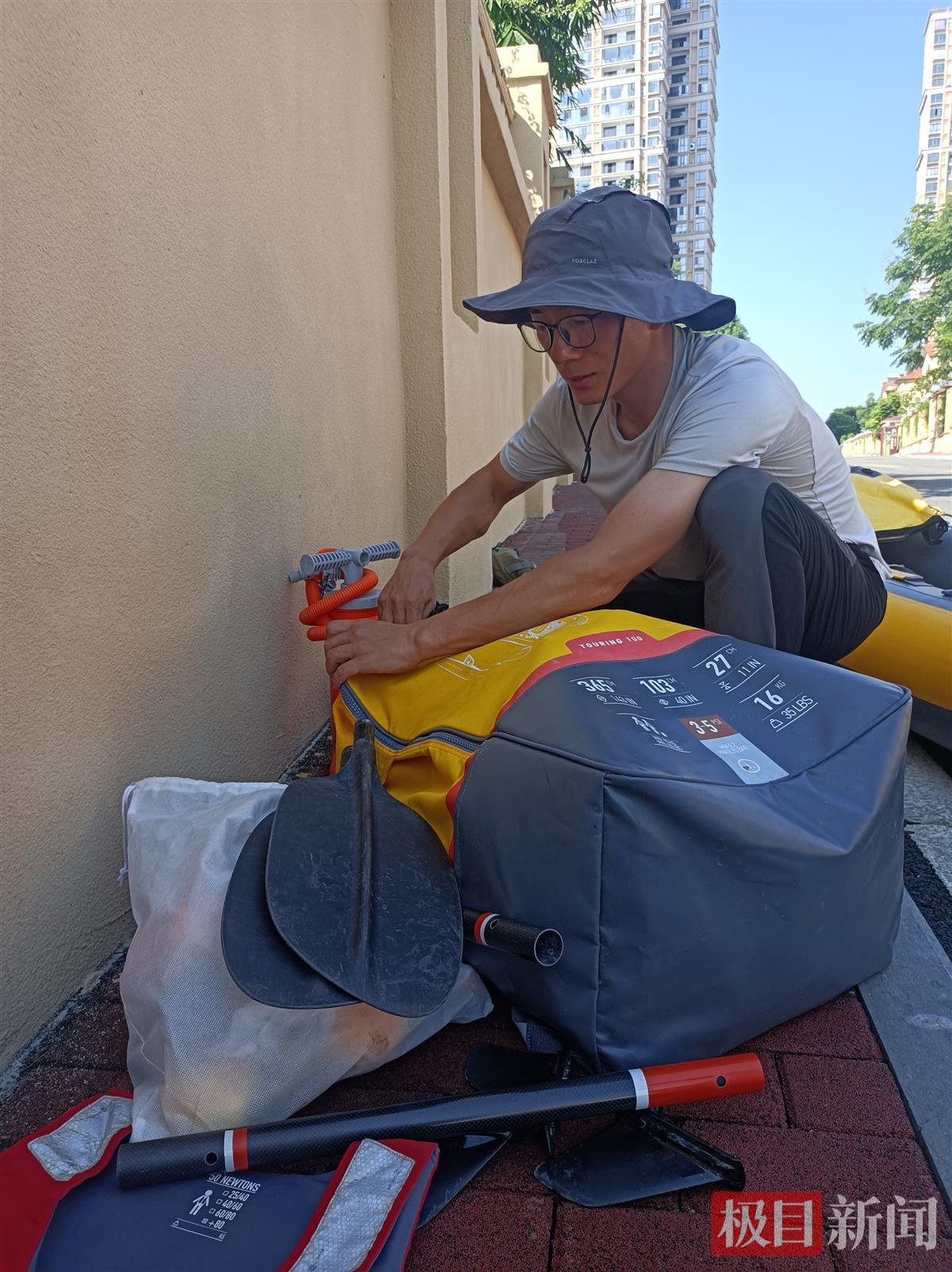 孙文竹漂流时会开启直播。(记者刘毅摄)