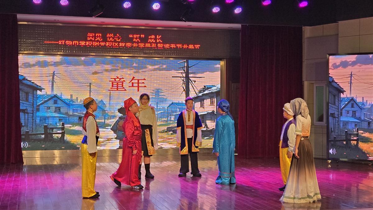 在该校报告厅中,六年级学生面向一至五年级学生展示了他们在暑期的读书和实践收获。同学们合唱的《童年》歌声悠扬,演绎的课本剧《童年》又扣人心弦。读万卷书,行万里路,有同学结合古诗词介绍了暑期出游所看到的各地风土人情。通过励志传记,同学们了解到了中国从艰难到辉煌的百年奥运历程。最后,同学们集体朗诵的雅韵诗词声情并茂,呼唤着全校师生一齐诵读经典、对话圣贤。