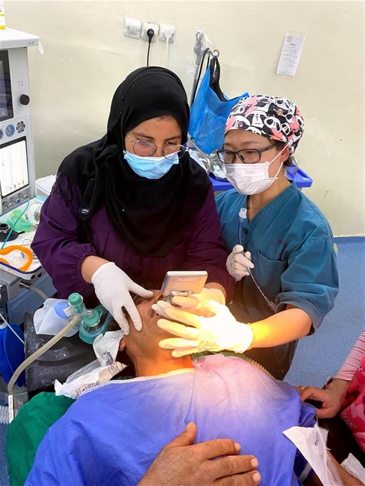 在艰苦条件下,中阿医生为小婴儿完成手术(受访者供图)