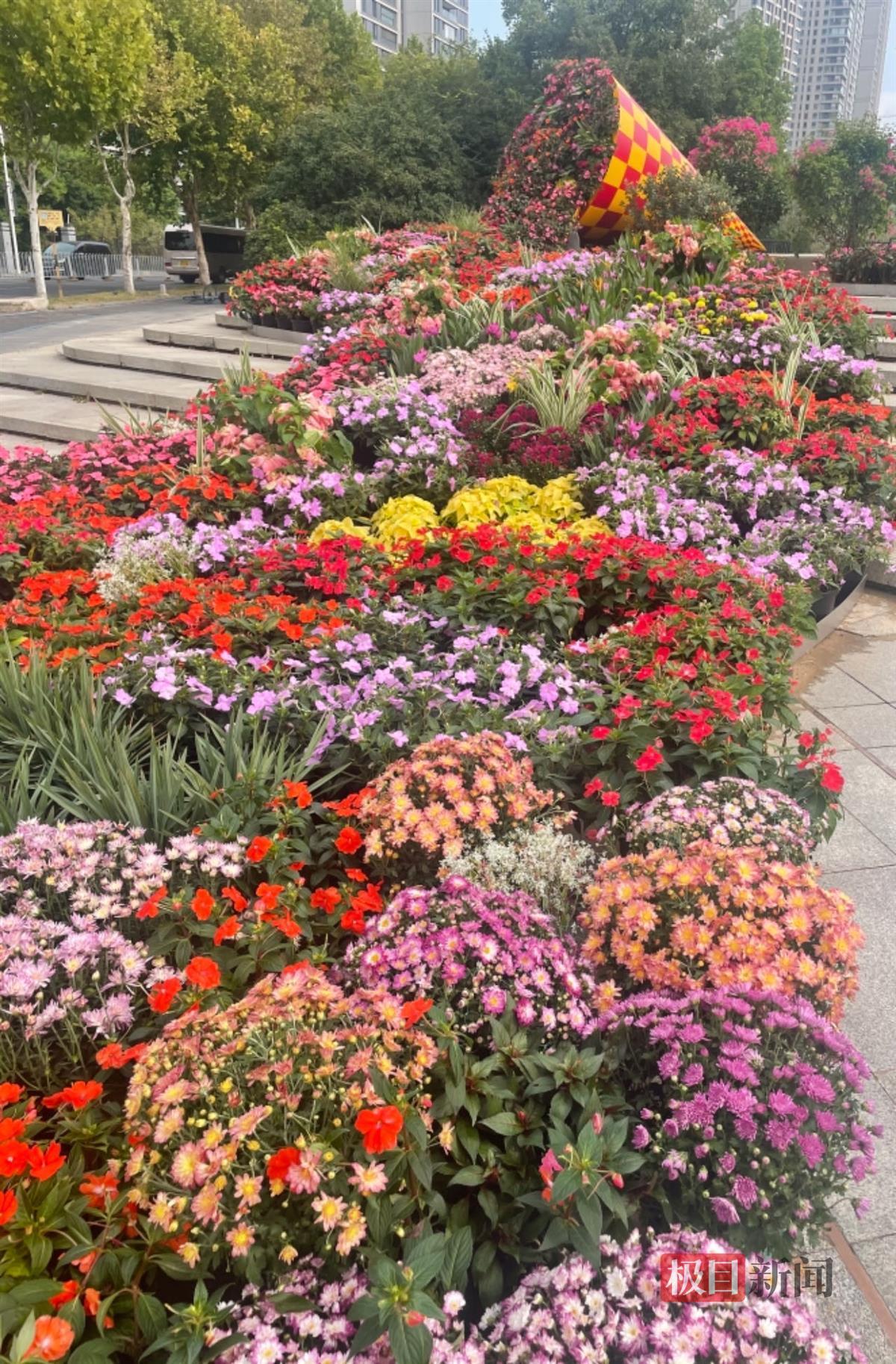李风涛介绍,比如花卉主角的超级凤仙,来自宜昌高山一个基地,红枫、山茶、向日葵、彩叶草、长春花等都来自武汉本地。这些综合长势、色彩、形态等因素精挑细选的花卉,景观效果可不是昙花一现,“它们大多是秋色植物,可绽放至霜降之前。”李风涛特别提醒市民和游客们爱花惜花,拍照时注意保持距离,更不可踩踏。