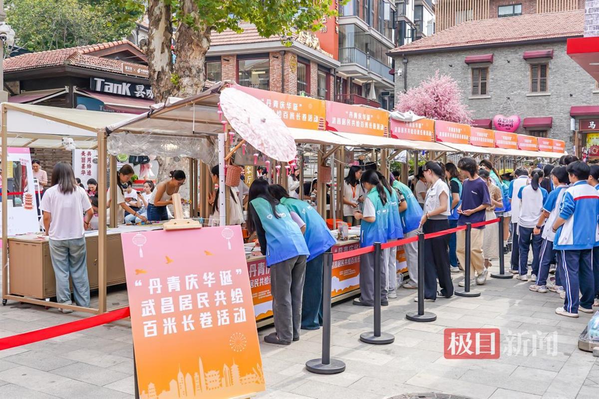 万紫千红迎国庆,片片红叶舞秋风。为庆祝中华人民共和国成立75周年,9月26日上午,武汉市武昌区昙华林历史文化街区迎来了一场别开生面的文化盛宴——“丹青庆华诞”武昌居民共绘百米长卷活动,现场参与者用手中的画笔祝福祖国,一同感受中华优秀传统文化的魅力。