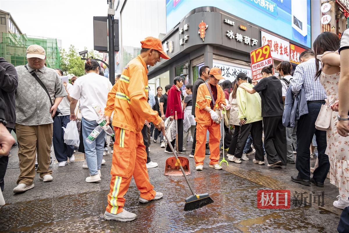 国庆假期,江汉路步行街成为游客的热门打卡地,日均人流量超40万人次。为确保街区洁净有序,江汉环卫部门确定全线2500米以50米为一个点位,定点、定岗、定人实施巡回保洁。在京汉大道路口、中心百货广场、中山大道路口、江汉路地铁站C、D出口、江汉关等人流量密集点位,增设大容量垃圾桶,加强巡回收运频次,保障街区干净整洁。