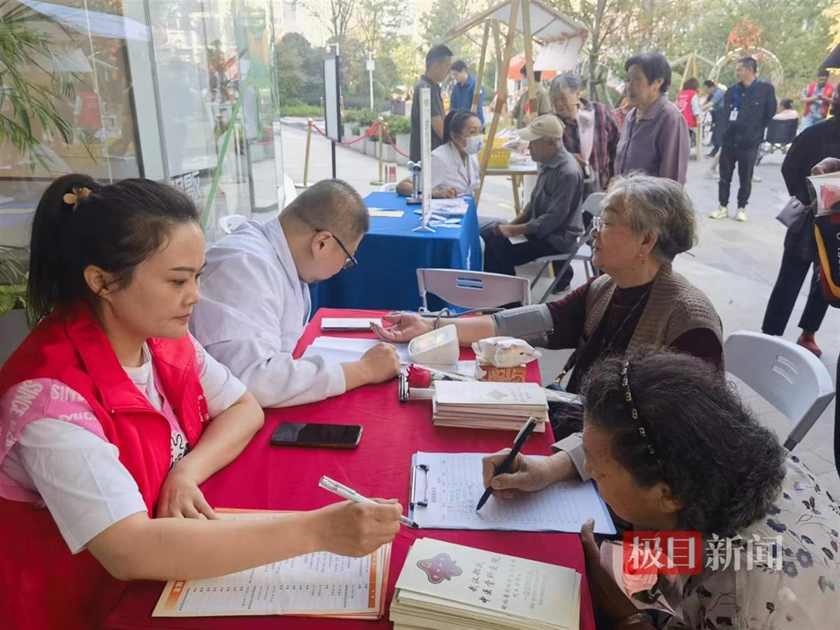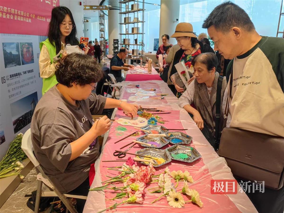 本次重阳敬老游园会设置了三大板块,精彩纷呈。“重阳养生局”为老年人提供中医义诊、艾灸理疗和眼科义诊,让他们收获健康与关怀;“重阳怀旧局”则通过菊花拓印、茱萸投壶等传统游戏,让老年人体会到别样的精彩时光;而在“重阳茶歇局”上,老人们一边品尝着清香的菊花茶、鲜美的水果和精致的重阳糕点,一边观看着红色电影,悠然自得。