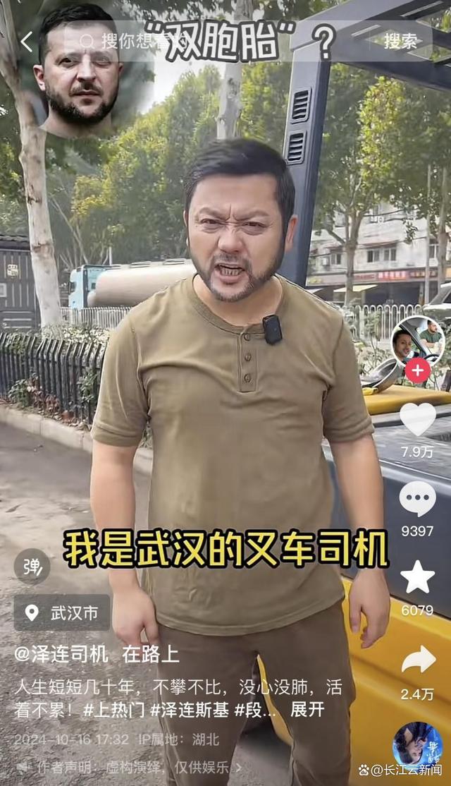 近日,一位长相酷似乌克兰总统泽连斯基的主播火了。视频中,他自称自己不是泽连斯基,是武汉的一名叉车司机。对比两人照片,的确有几分相似。评论区,有网友调侃:“他可能和泽连斯基是双胞胎。”