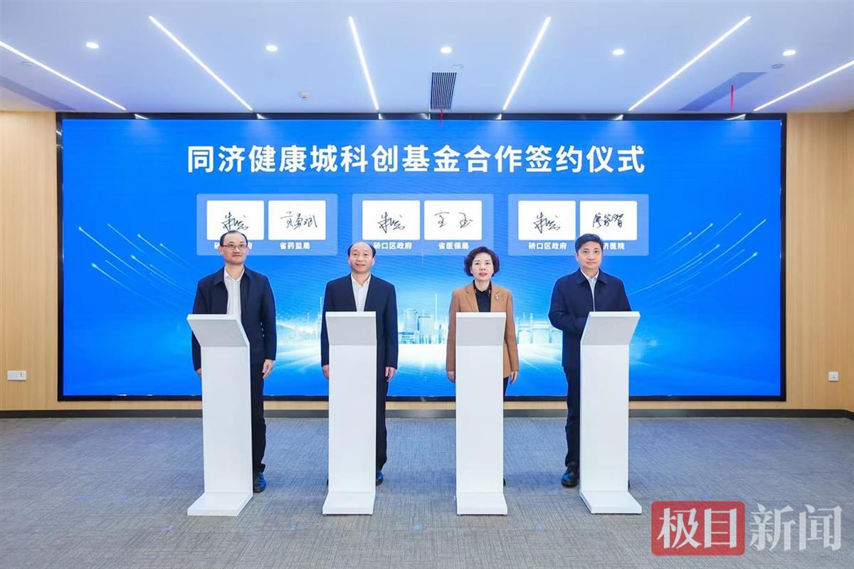 签约仪式上,硚口区人民政府区长苏海峰发布了硚口2024健康产业战略,提出了优化健康产业发展生态的“十个一”举措。省药监局、省医保局和同济医院与硚口区共同签署了支持硚口健康产业发展合作协议。硚口城建、宏泰产融、恩然创投正式签订了同济健康城科创基金合伙协议;同济健康城科创基金与凯德维斯生物、科恩泰生物、泓宸创新生物、纳美信生物、零假设科技等五个投资项目进行了现场签约;同时,基金与华中科技大学同济医学院附属同济医院签订了战略合作协议,双方拟就科研成果投资与转化,成果转化平台建设,人才培养与交流等方面开展全面合作,明确设立“基金”专属专家顾问团队,建立联席会制度,共同建立建全成果转化项目筛选机制。