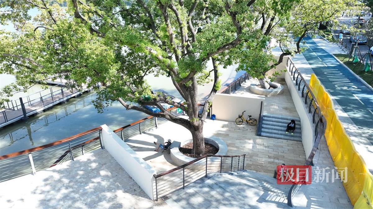 同时,杜艳华紧急联系东湖绿道三期大树保护单位武汉市园林生态集团创然公司,与该公司科技养护部部长周鹰一起现场诊断开处方:清理树池土壤,修枝整叶以透气透光,还要有树荫,伸向湖面的树枝适当保留,呈现若隐若现的效果……
