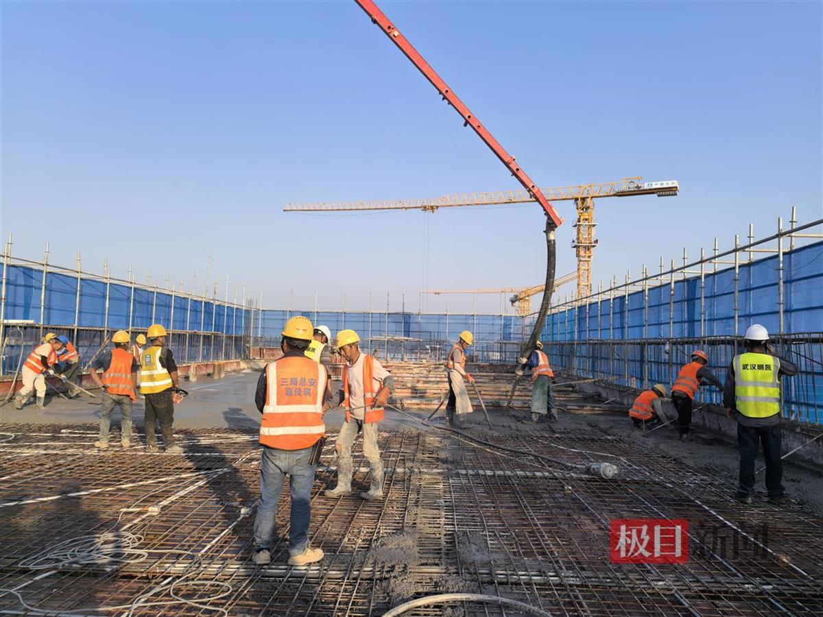 在项目现场,初中教学区正在热火朝天地施工,数栋主体教学楼已拔地而起。据悉,自2023年底开工以来,项目以“保安全、促履约、提质量”为前提,克服土地腾退、施工变道、大体量清淤等诸多难题,应动尽动、靶向排障。同时积极采用全景塔吊集控中心、BIM设计、无人机测绘等智能建造手段,建立工程建设全生命周期数字信息化云平台,塑造智慧工地生态圈,推动项目建设。“经过连续11小时的浇筑,首栋楼主体结构顺利完成浇筑封顶,后续将进行保温、防水等工程施工。”中建三局长江新区外校项目总工程师陈柏材介绍。
