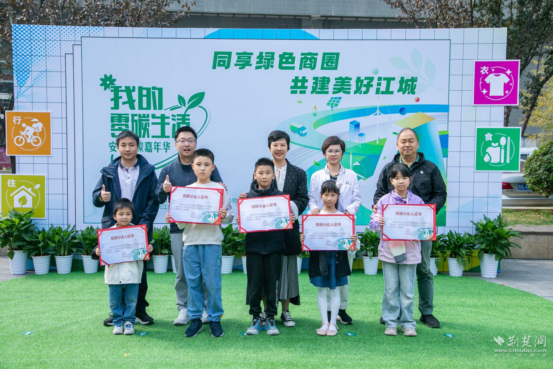 在活动现场,江汉路5位商户代表宣读并签订了绿色倡议书。荆楚网副总经理查昭、湖北省长江生态保护基金会“零碳长江”项目负责人谢达,以及安利湖北分公司总监聂洋,安利湖北志愿者协会会长袁为群、周亚星等5位领导向5位小环保志愿者代表颁发《低碳小达人证书》。