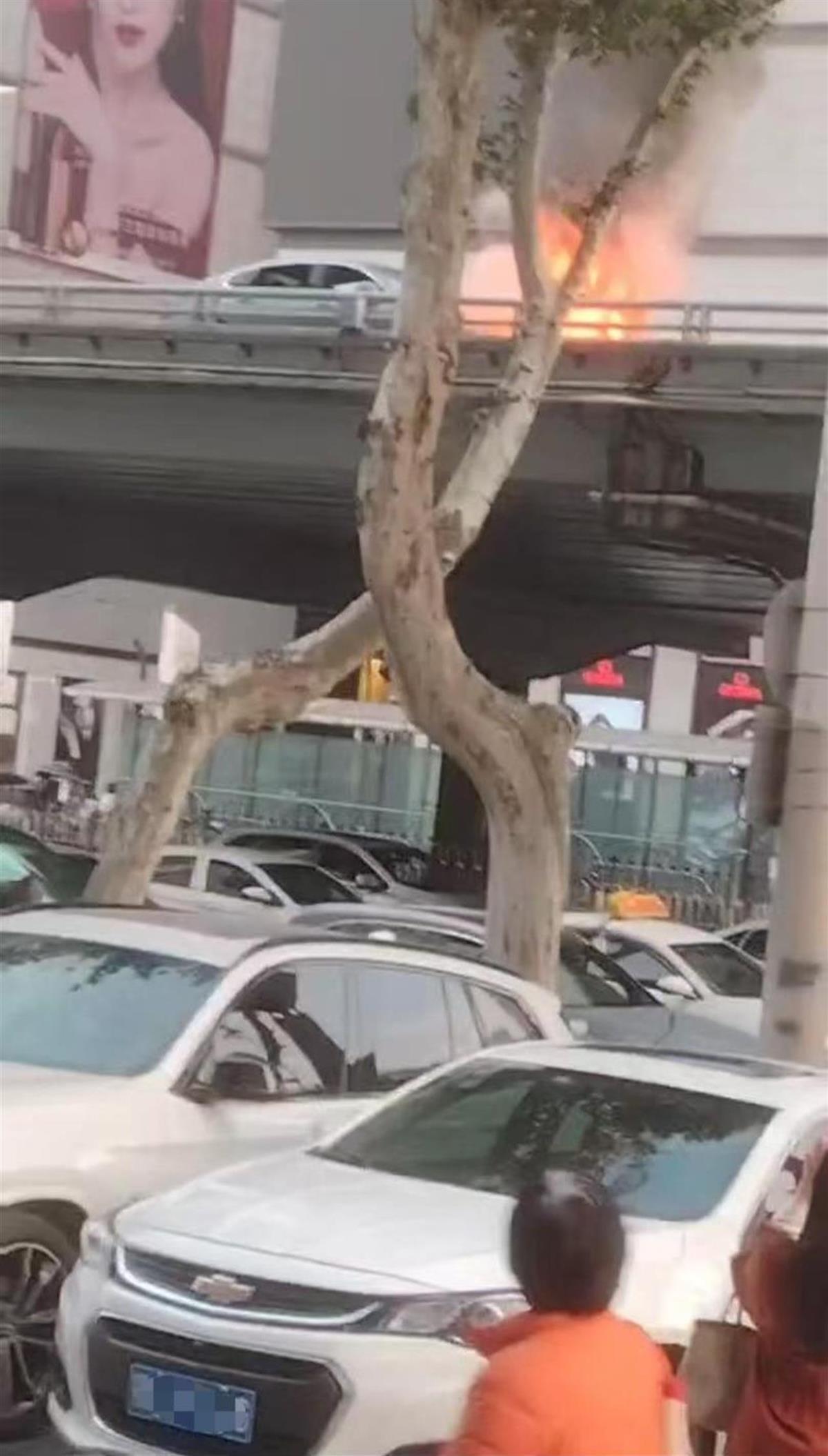 创世纪广场的保安王师傅目睹了事件发生的全过程。“当时我正在广场上执勤,突然就听到轰的一声。”王师傅介绍,事件发生在12月6日下午4时30分左右,听到爆炸声后,他连忙往发出响声的方向望去,只见5米高的高架桥上一辆小轿车的引擎盖冒起大烟。“不到一分钟,火就烧起来了,差不多有3米多高。”