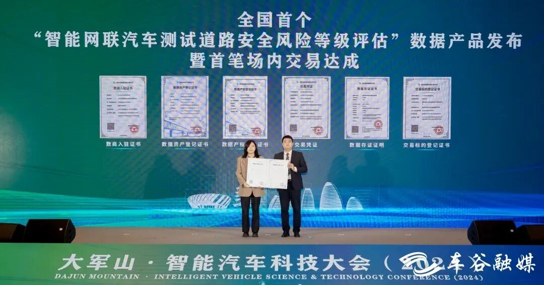 当天,湖北数据集团中部数据流通服务中心与武汉经开区共建“中部数据流通服务中心—武汉经开运营中心”揭牌,湖北数据集团中部数据流通服务中心向武汉车网智联测试运营管理有限公司颁发《数据资产登记证书》《数据产权登记证书》等权威数据证书,完成全国首例“智能网联汽车测试道路安全风险等级评估”数据产品场内交易,数据将用于武汉智慧交通应用场景的规划和建设,为湖北省乃至全国的智能网联数据产权保护和数据要素市场化提供了示范。