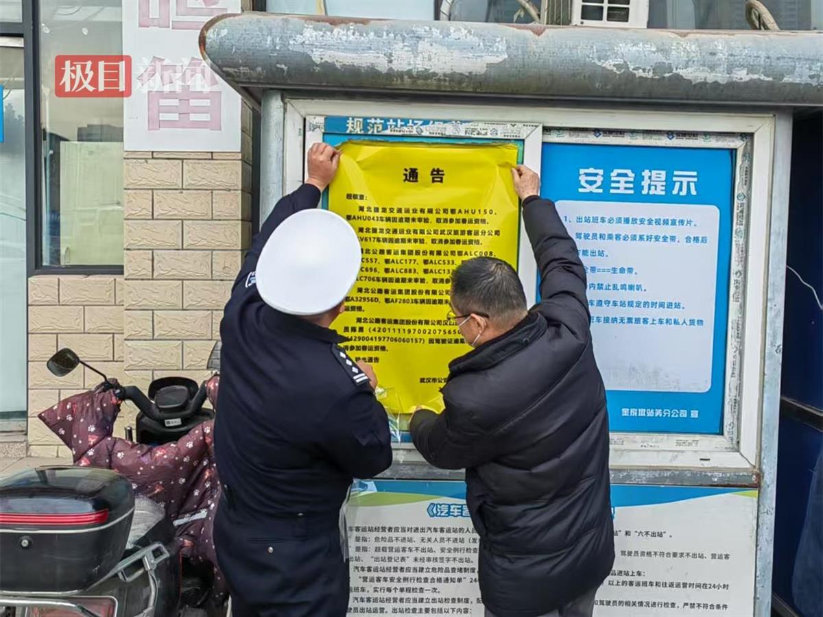 1月15日上午10时,武昌区交通大队民警来到宏基客运站,仔细检查站内车辆,并叮嘱司机:“出车前一定要做好全面检查,提醒乘客全程系好安全带。”在青年路客运站,江汉交警将隐患车辆和驾驶员进行黄榜公示,严禁其上路。