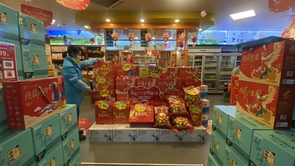 孝感分公司府东加油站员工齐整便利店,货物满满迎佳节