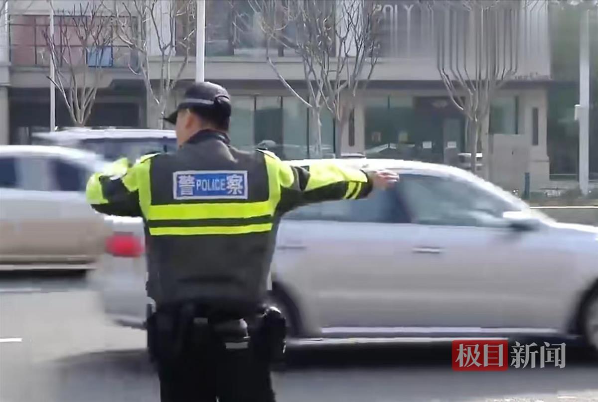 武昌交警在武珞路分流前往黄鹤楼的机动车