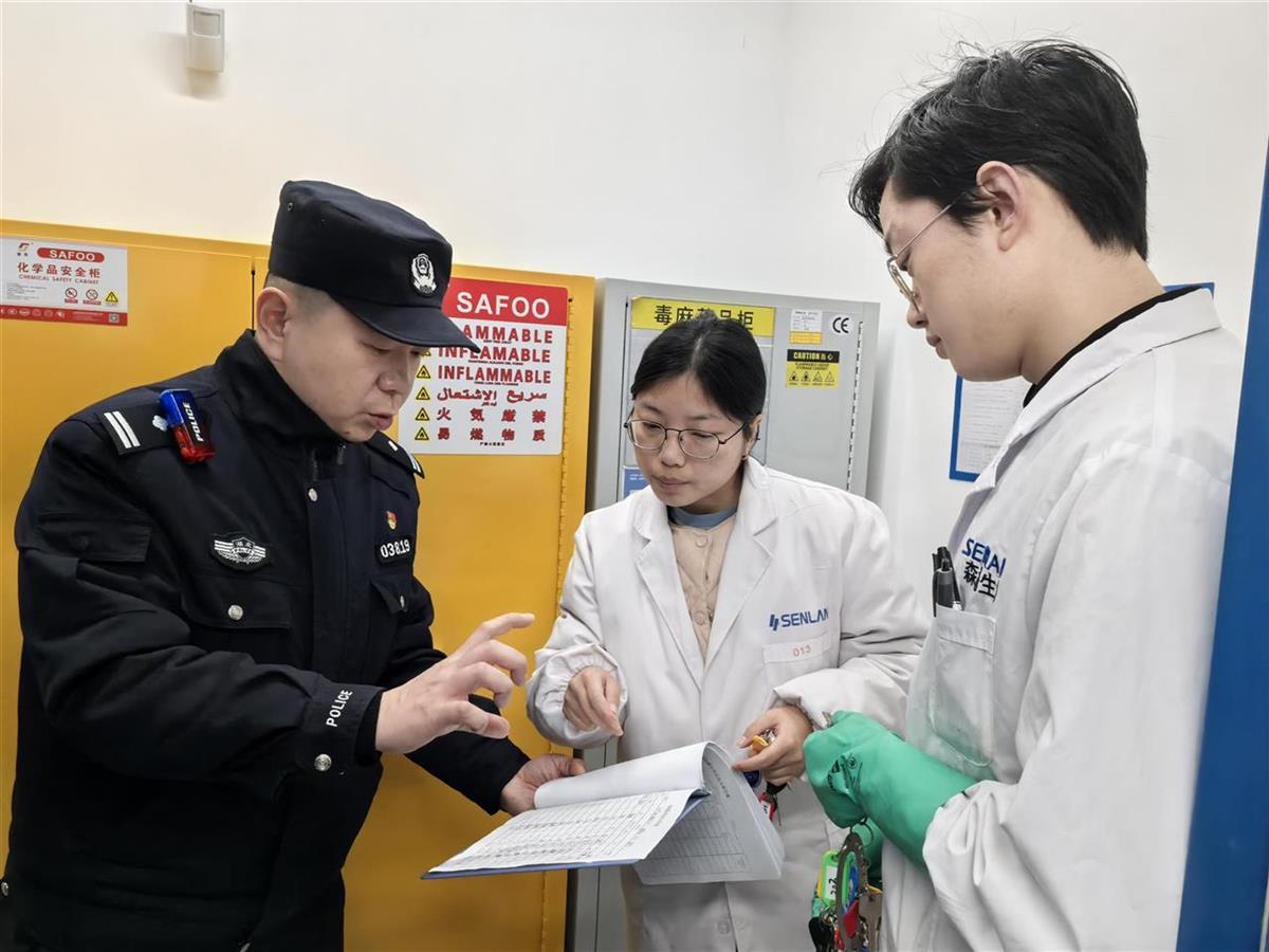 “一定要双人双锁,登记每次用量明细。”在森澜生物公司,何珺严格检查了易制毒、易制爆化学品的存储和管理情况,要求企业严格落实化学品实验室管理制度,严防化学品流入社会。