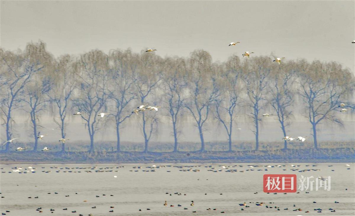 刘新建解释,今年小天鹅是多一些,从感官上比往年要多一倍,它们喜欢在远处的角落待着,所以不易被人察觉,有时也会来大湖中睡觉,与大堤的距离近一些。