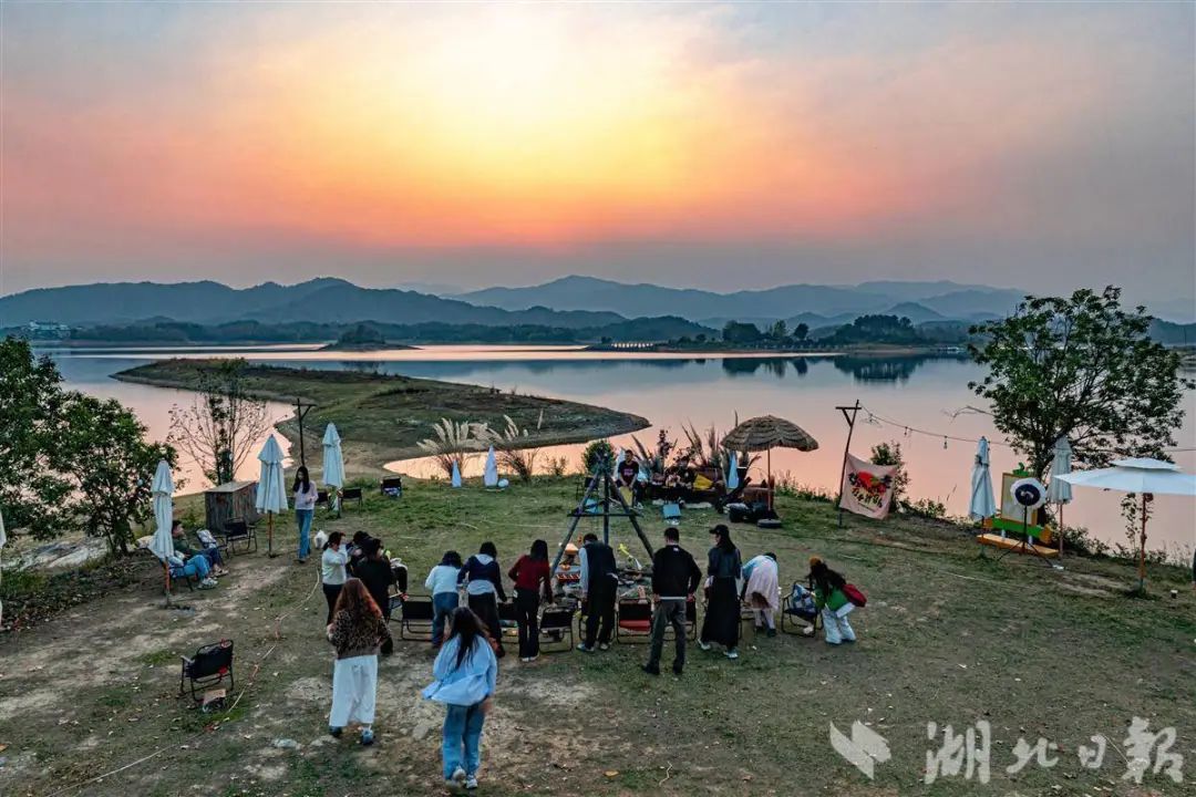 沿黄陂木兰大道一路北行,“小千岛湖”梅店水库旁,藏着武汉的新晋网红打卡地——山岛里营地。