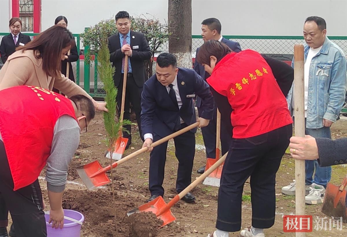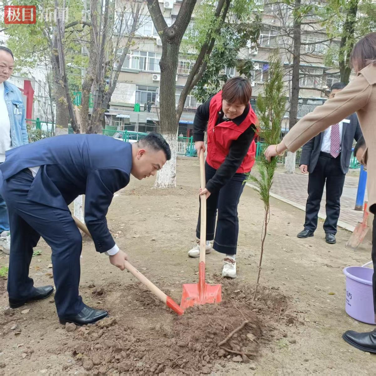 草长莺飞,又是一年植树节。3月11日下午,武汉市青山区钢花村街道120社区党委联合共建单位,发动志愿者为小区栽树苗,添新绿。