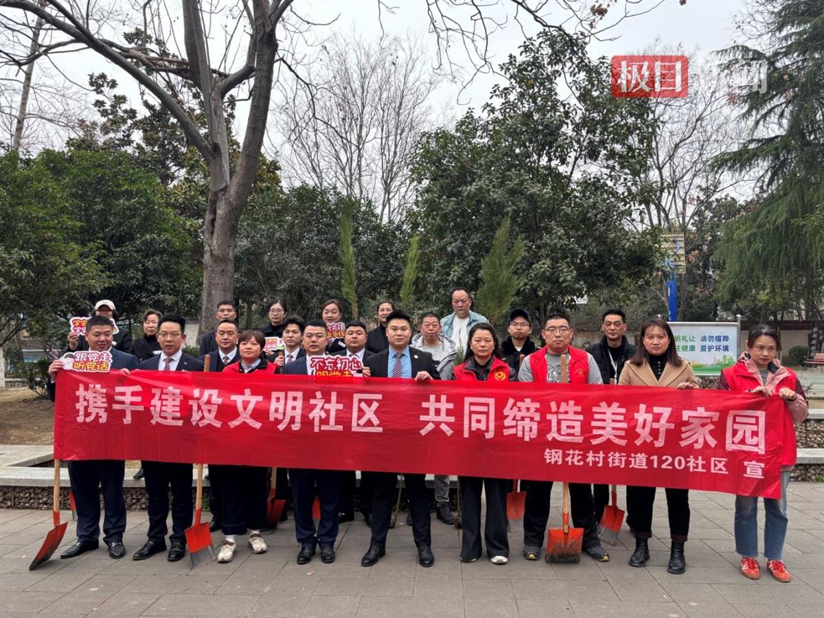 3月11日下午,120社区内一片热火朝天的劳动景象。来自企业的团员、党员,钢花村街道执法中心的执法队员,社区志愿者早早来到现场。在专业人员指导下,大家分组协作,有条不紊地投入植树工作中,挥锹铲土、扶正树苗、填埋浇水,每一个步骤都认真细致,确保新栽树苗的成活率。