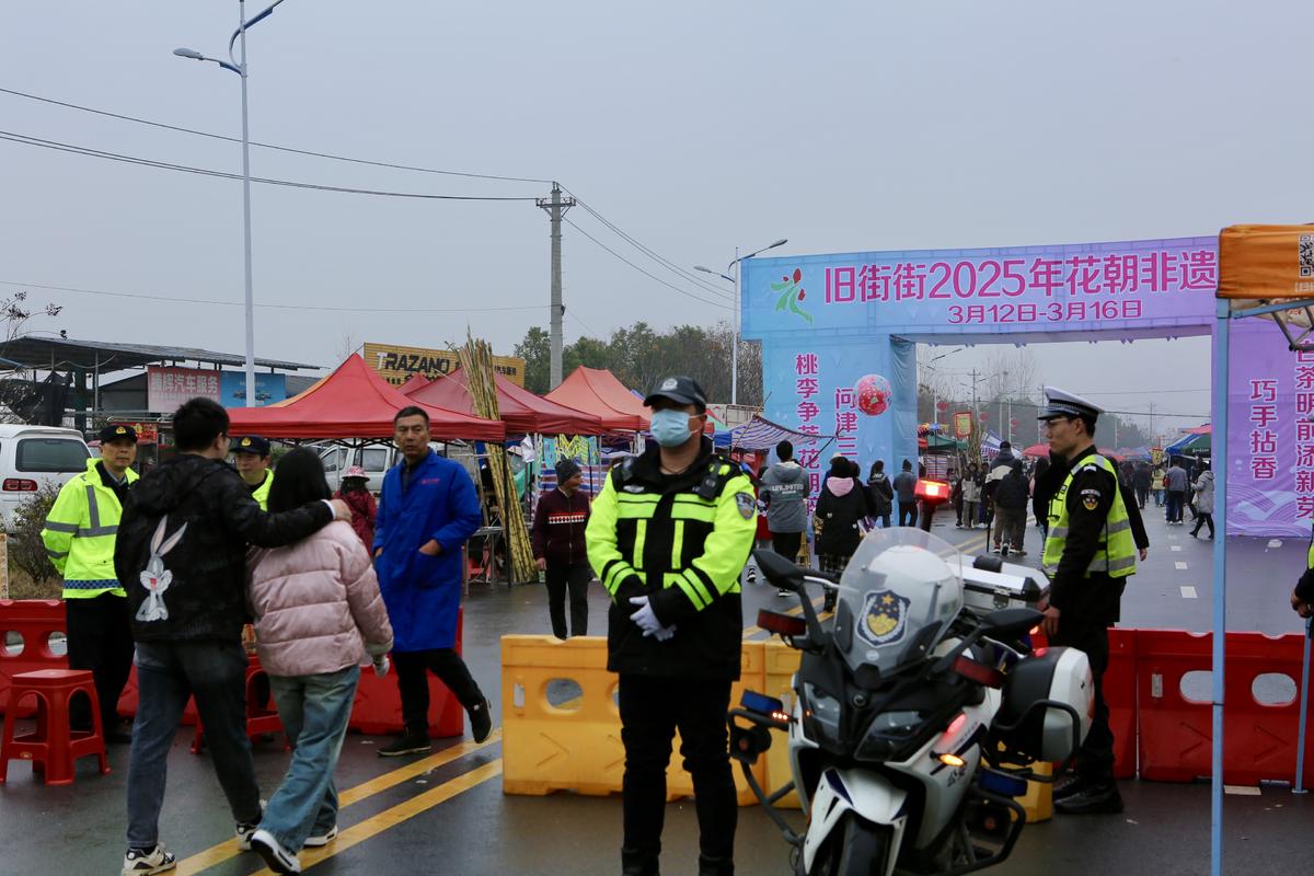 今年3月,武汉市新洲区花朝非遗推广季如约而至,潘塘、徐古、旧街、李集四地轮番上演非遗文化盛宴,吸引日均2万游客,旧街场高峰时段人流量更突破5万人次。为护航这一民间盛事,武汉市公安局新洲区分局全员驻守,以“隐患清零、科学疏导、快反响应”三大举措,为这场跨越八百年的文化盛宴保驾护航。