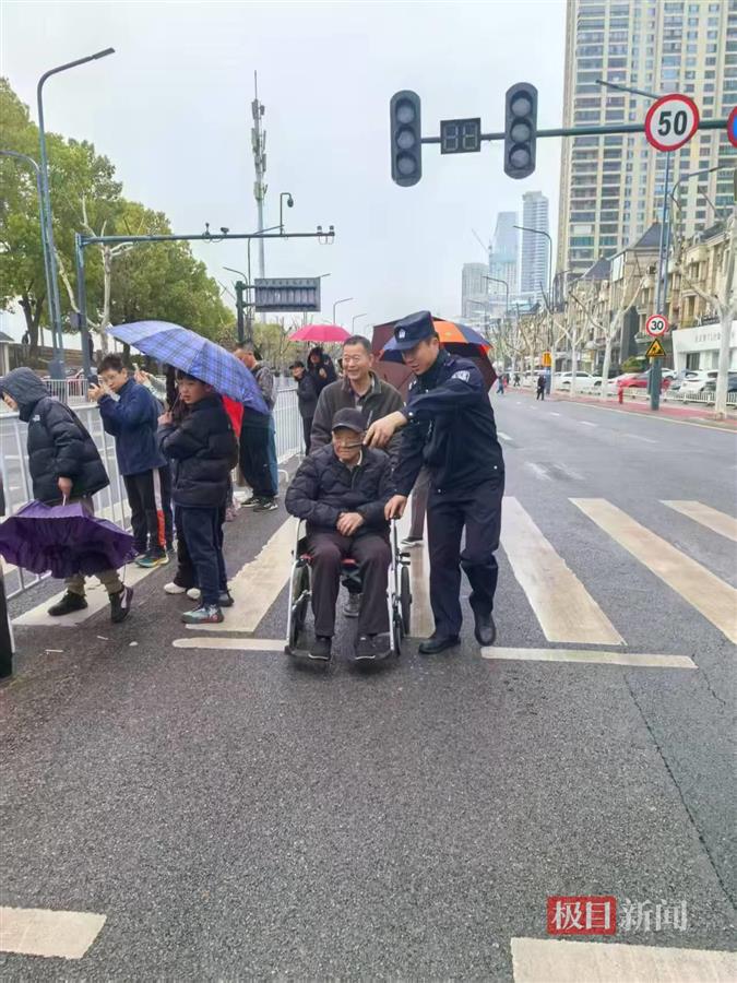8时50分,在武昌区前进路,六旬老人用轮椅推着93岁的父亲,望着20多厘米高的路缘石直发愁。武昌区公安分局民警张小金、陈百安立即上前,得知老爷爷要为参赛的孙女婿加油助威,两人将老人平稳地抬下马路,并安排l了安全无遮挡的“最佳观赛点”。一旁观赛的群众纷纷称赞:“武汉公安服务真贴心!”