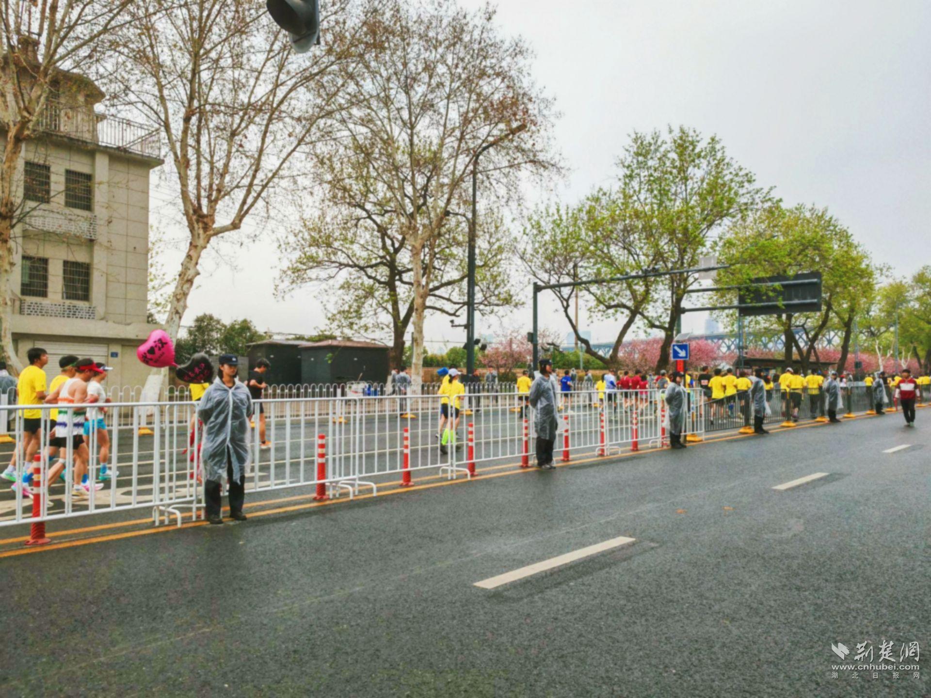 武汉警官职业学院师生在武汉马拉松中值守。徐天启 摄