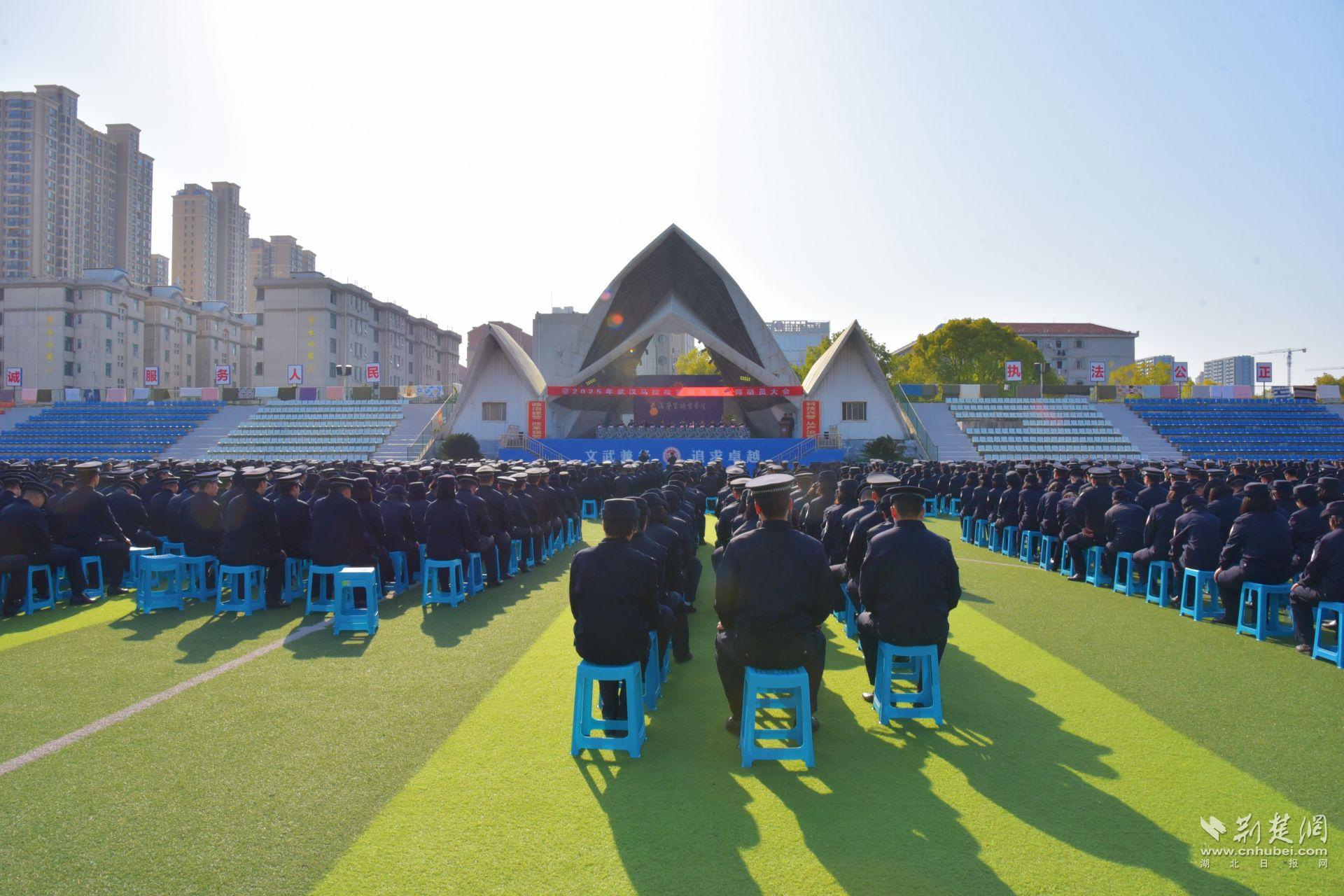 武汉警官职业学院召开武汉马拉松安保执勤誓师动员大会。徐天启 摄