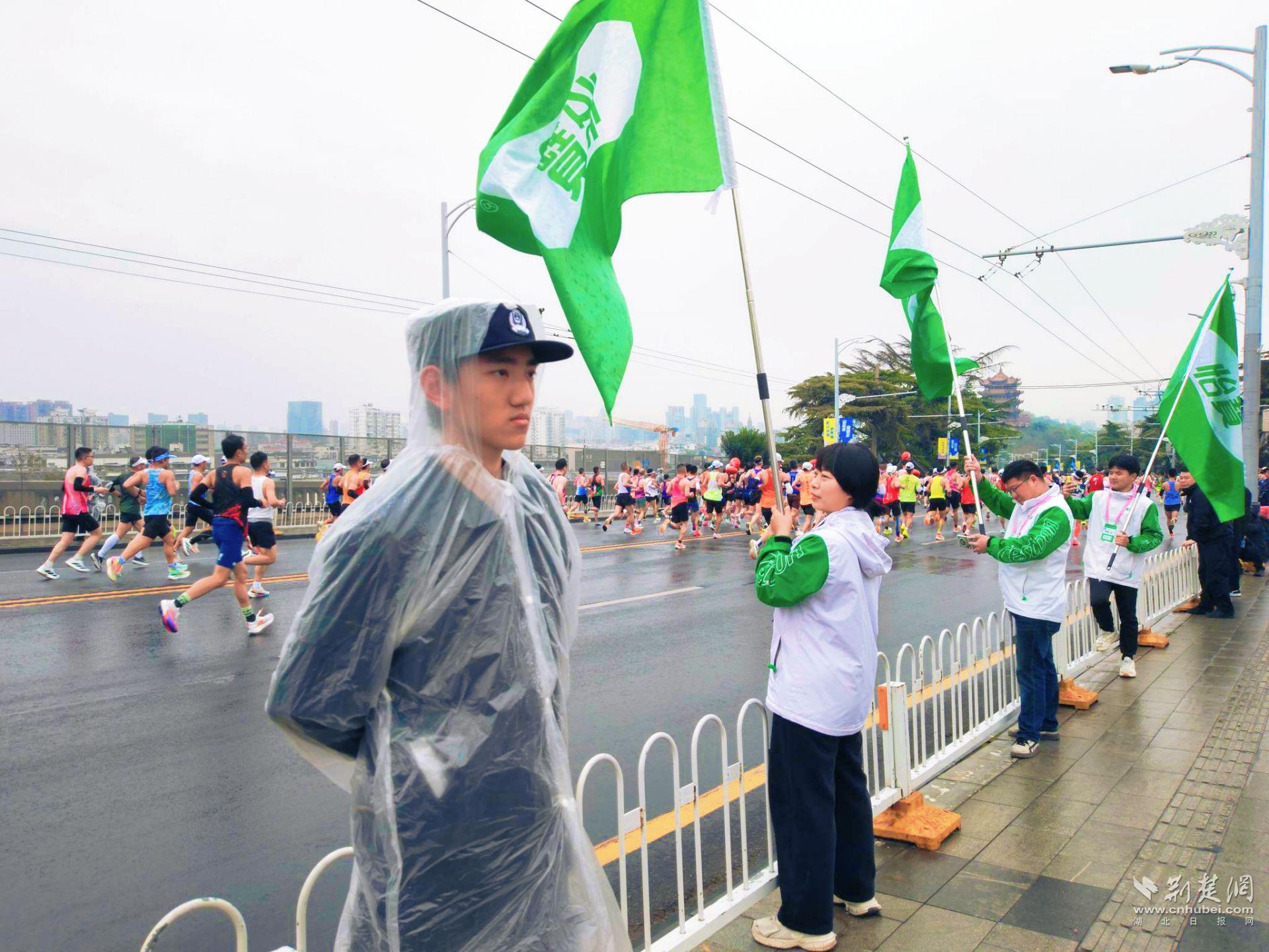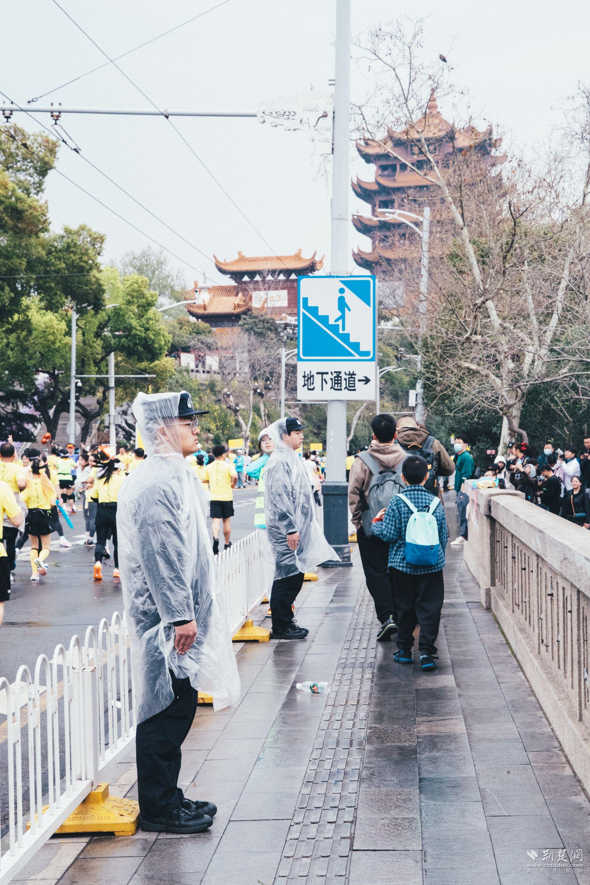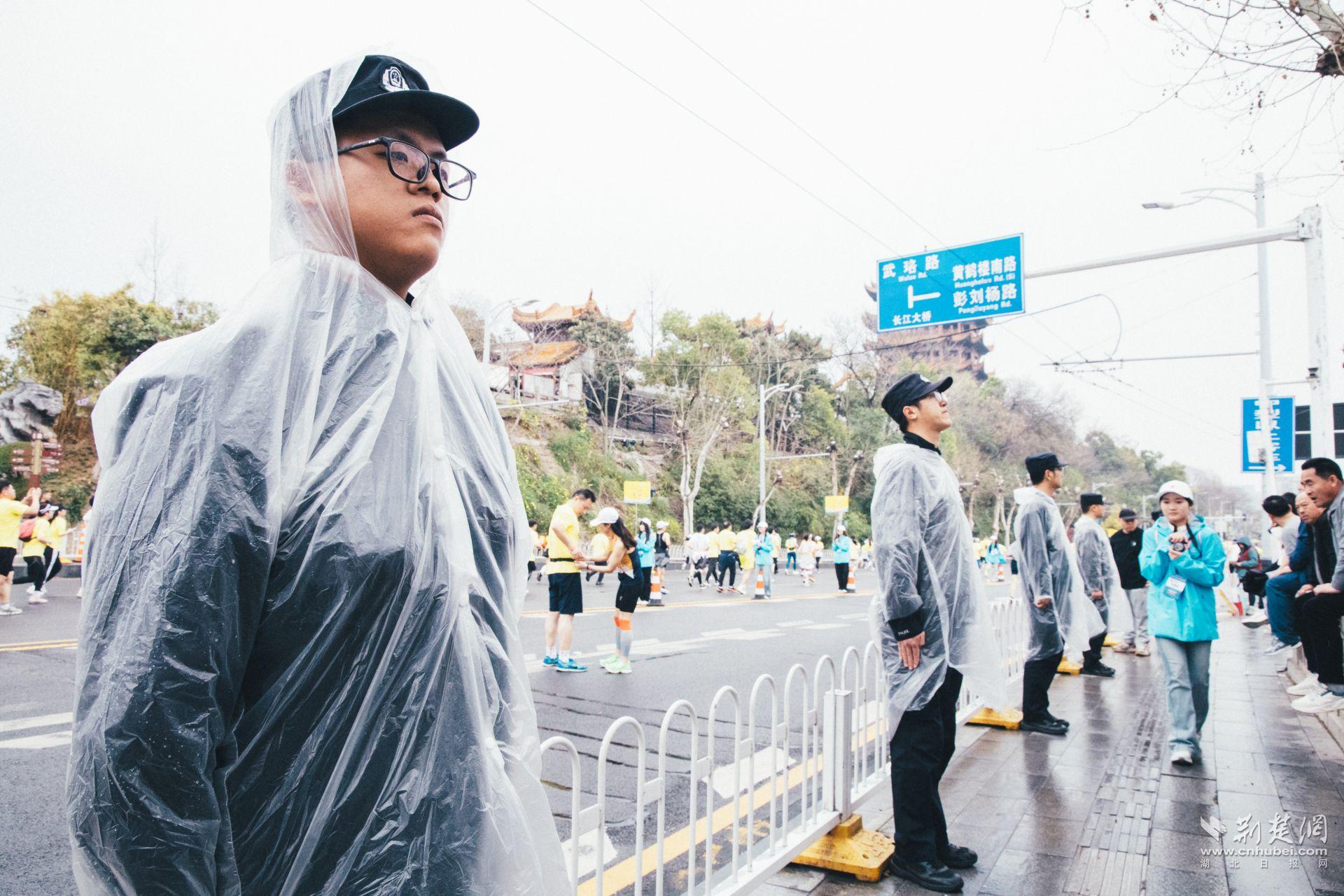 清晨,在毛毛细雨中,武汉警官职业学院师生已默默值守、连续站立数个小时。他们用挺拔的身姿筑起人墙,守护每一个奔跑者的安全,绘就了最靓丽风“警”线。