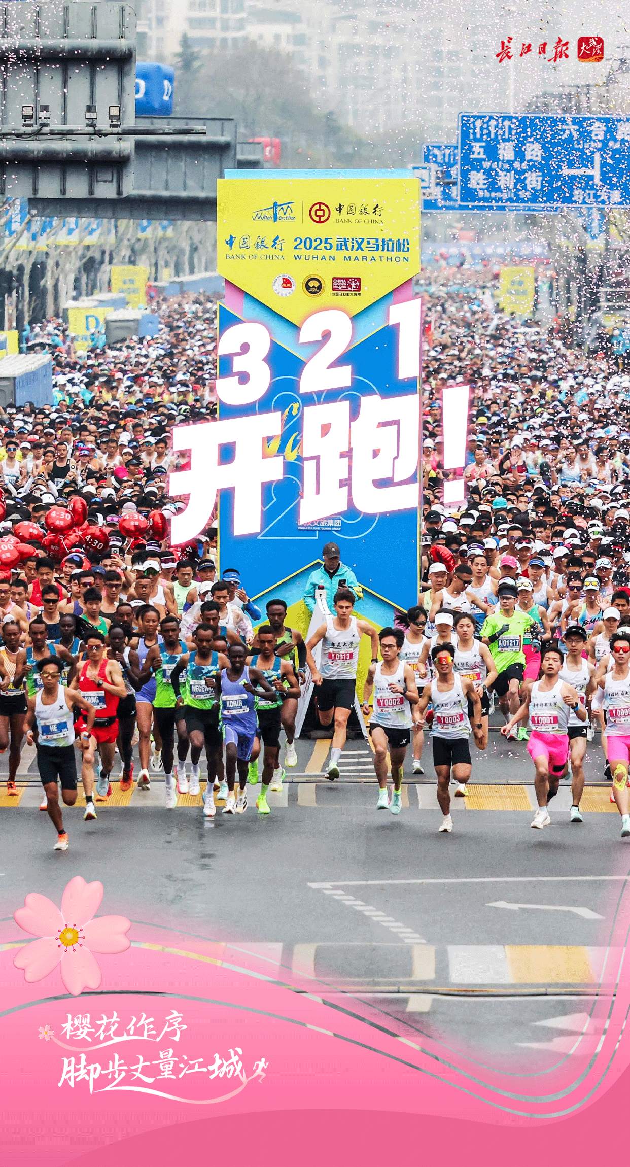 3月23日7时30分,随着2025武汉马拉松(以下简称“汉马”)鸣枪,4万名选手燃情开跑。樱花雨下,城市热力被瞬间点燃。一路樱花盛开,一路激情向前,与汉马一起跃进武汉春天。