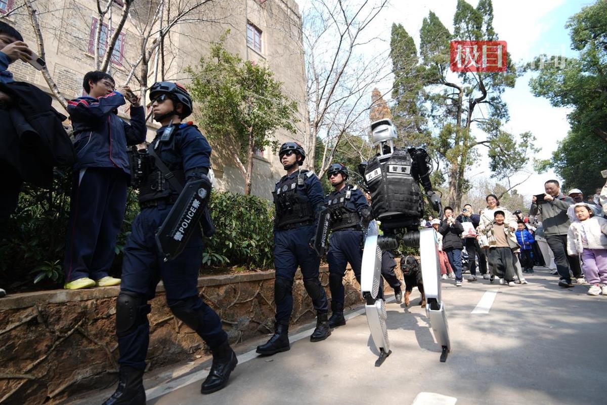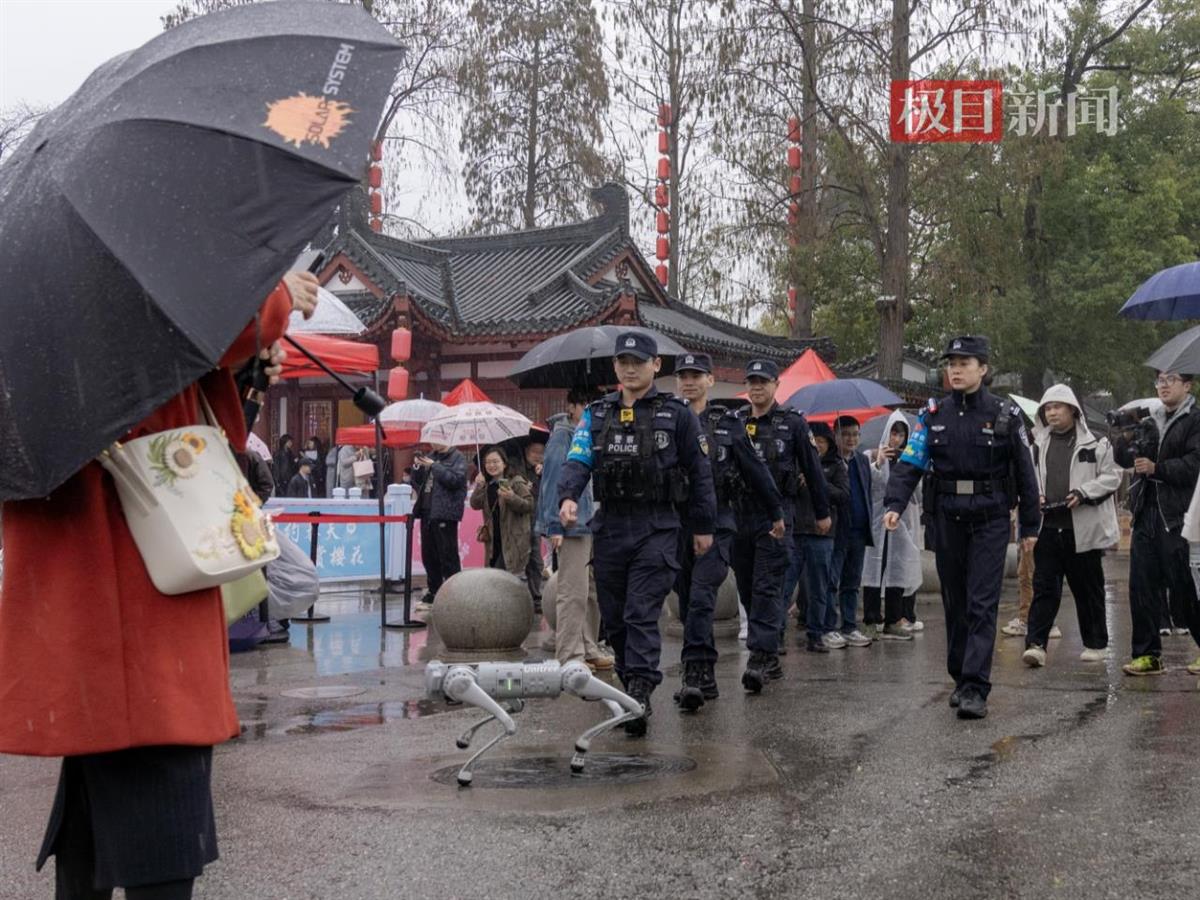 无人机在低空巡航,实时监控人流密集区域;机器警犬穿梭于游客之间,协助民警巡逻;人形机器人与特警并肩作战,成为游客瞩目的焦点……三月的武汉,随着赏樱季进入高峰,吸引了全国乃至世界各地的游客慕名而来。从空中到地面,从人流疏导到交通管理,武汉公安以科技赋能,在各大景点筑起一道坚实的智慧安防屏障,为游客打造平安、有序的赏樱环境。