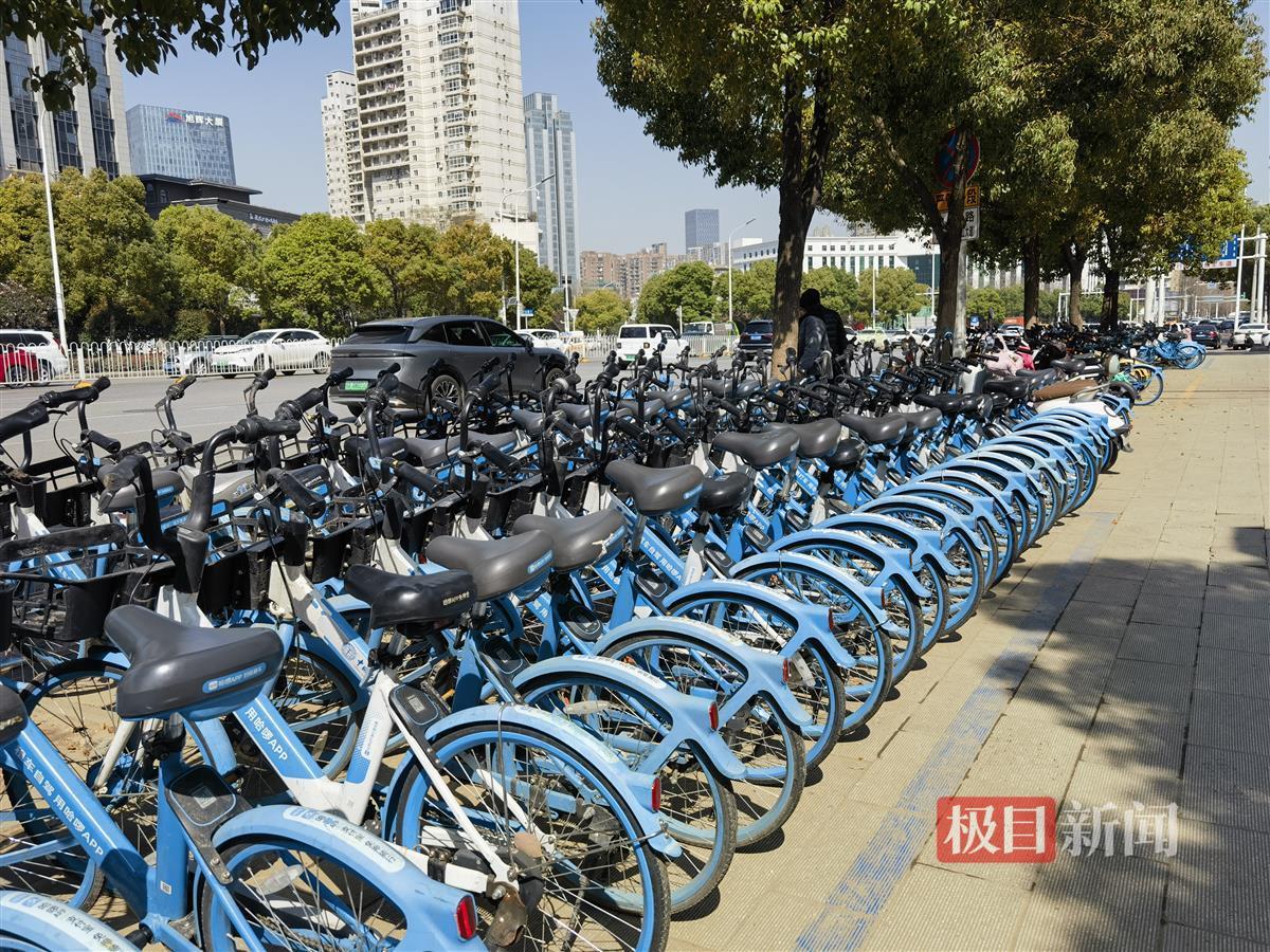 在硚口、江汉和江夏街头,记者看到,单车运维人员不停地将插花停放的单车,经过规整后,按色停放,形成了一道文明的风景线。