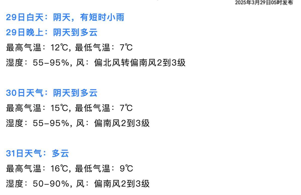 湖北日报讯(记者汤炜玮、通讯员陈声超)3月29日从武汉市气象局获悉,预计29日至30日武汉市平均气温9℃~11℃,倒春寒持续,其中29日白天武汉市南部有弱降水;4月1日起气温逐步回升。下周起,武汉市气温逐步回升,最高气温回归20℃+,武汉的春天又回归了。