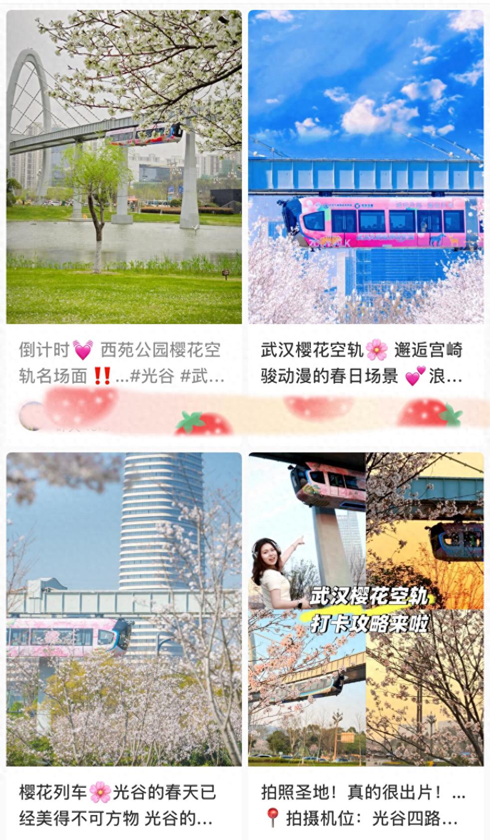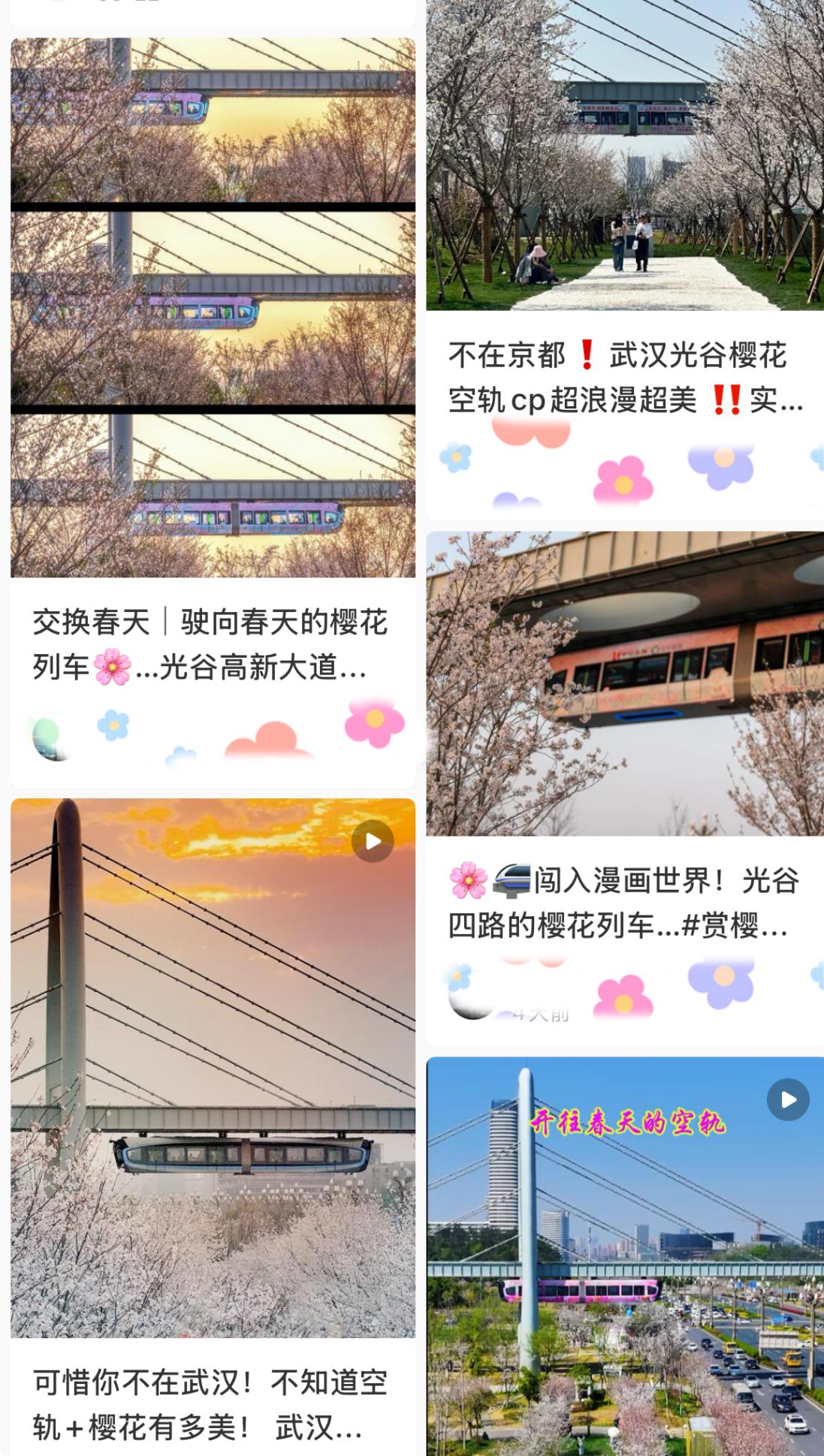 游客张女士是一位摄影爱好者。她说,每年樱花季都会来武汉,今年特意选择光谷空轨这条线路。“这里的樱花和空轨结合得恰到好处,每个角度都能拍出绝美的照片,朋友圈里大家已经羡慕得不行了!”