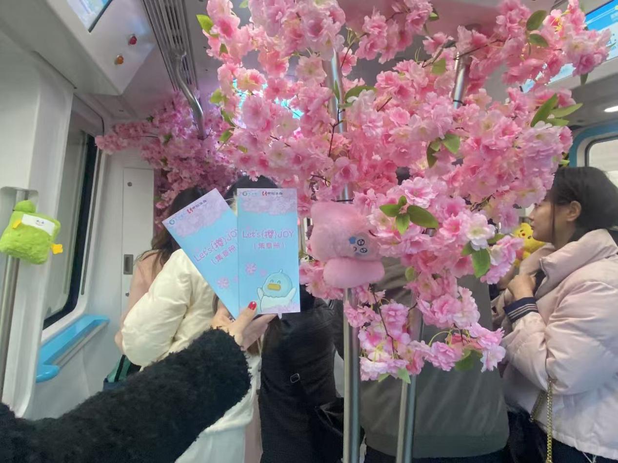 工作人员说,“希望通过这些装饰,让游客在乘坐空轨的过程中,能更好地融入樱花季的氛围,享受一场视觉与心灵的盛宴。”