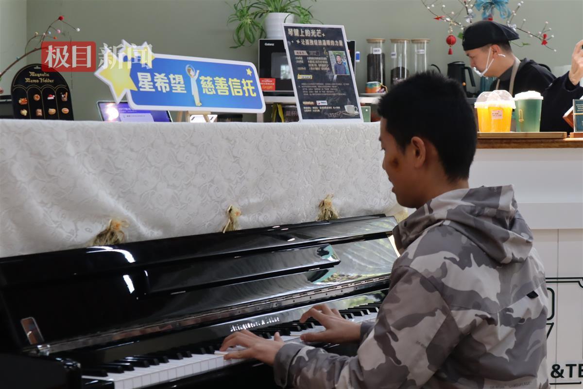 4月1日上午11时许,武汉市江岸区高雄路8号的1017公益咖啡厅内举办着一场特殊的入职仪式。17岁的小杰坐在钢琴前,神情专注,指法轻盈熟练。在入职首秀上,从他指尖流淌出的钢琴曲《给母亲的信》,旋律悠扬,让咖啡厅内的听众感动不已。
