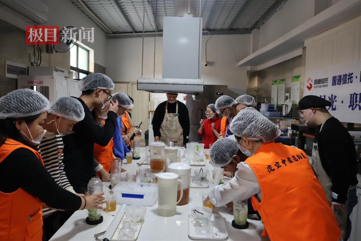 小杰的工作地点——1017公益咖啡厅,是胡弘在2023年为帮助心智障碍青年实现辅助性就业所创设的。“正如1017谐音‘邀您一起’所蕴含的意义,这里成为孩子们提升技能、体验自立快乐的温馨家园,也是社会各界接触了解‘心青年’的窗口。” 胡弘告诉记者,对于心智障碍者,要实现就业,首先得学会与他人相处,控制自我情绪。为此,在1017咖啡厅的岗前培训课程设置了从饮品、烘焙、快餐、礼仪、销售到清洁等多个社交场景,通过实景式学习,让心智障碍青年掌握冲泡咖啡、烘焙糕点等技能,帮助他们收获自我价值感,在社会中找到属于自己的位置。