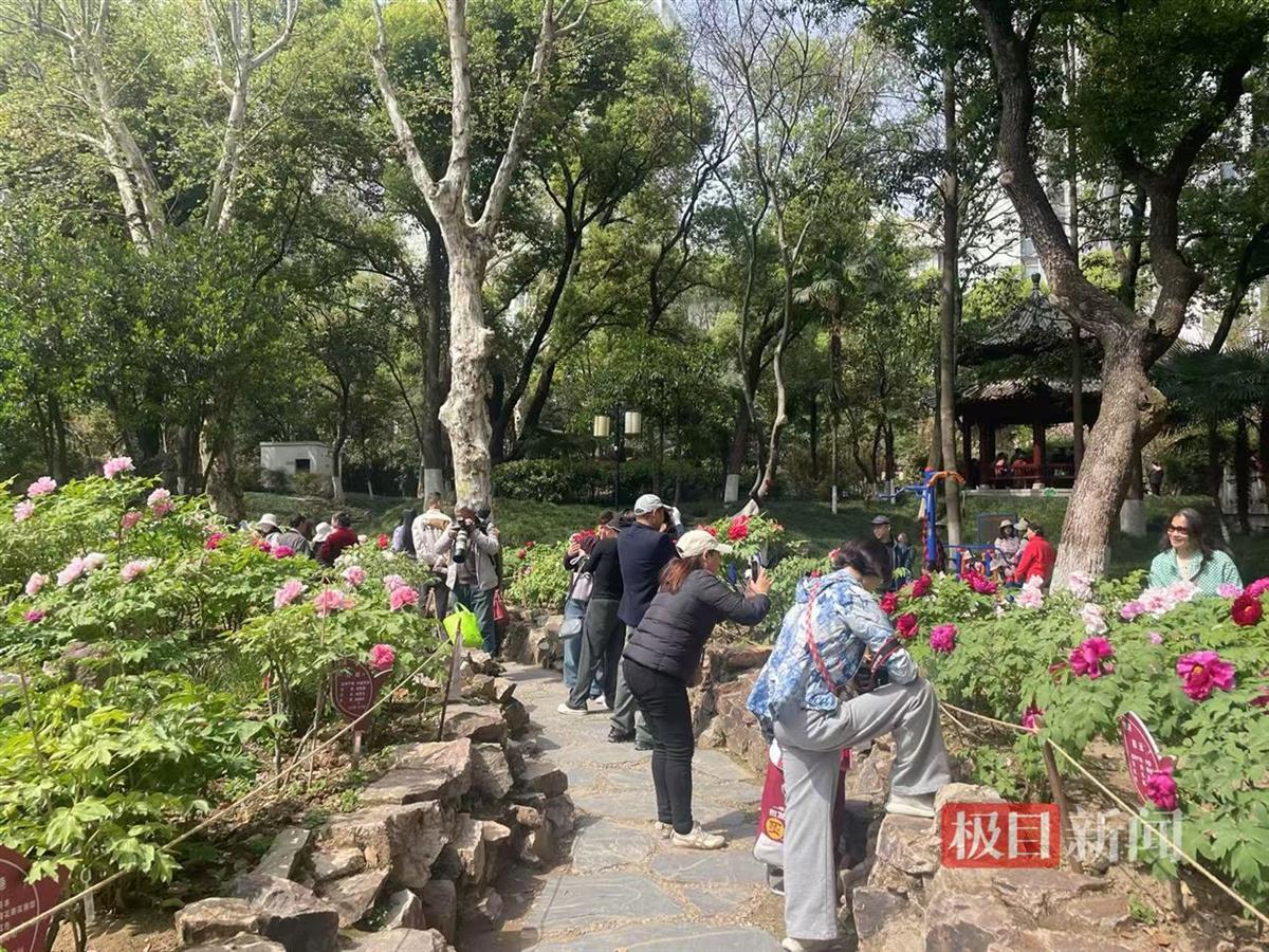 张女士就住在附近小区,常来散步,她惊叹于牡丹的强大气场,“像是要把积攒三季的芳华就在这几天燃尽,也将汉阳公园的赏花气氛推向高潮。”